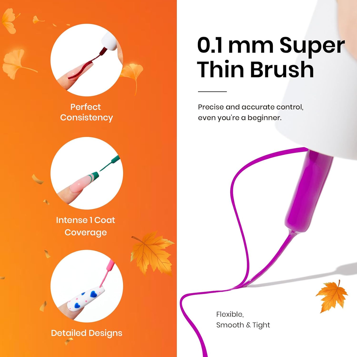 - Gel Liner Nail Polish: Beetles nail art design with beautiful colors can make French nails, coffee nails, chocolate-glazed donut nails, and so on. The 20pcs gel paint for nail art offers a variety of bright and dreamy shades. Giving you a more comfortable home nail art experience.