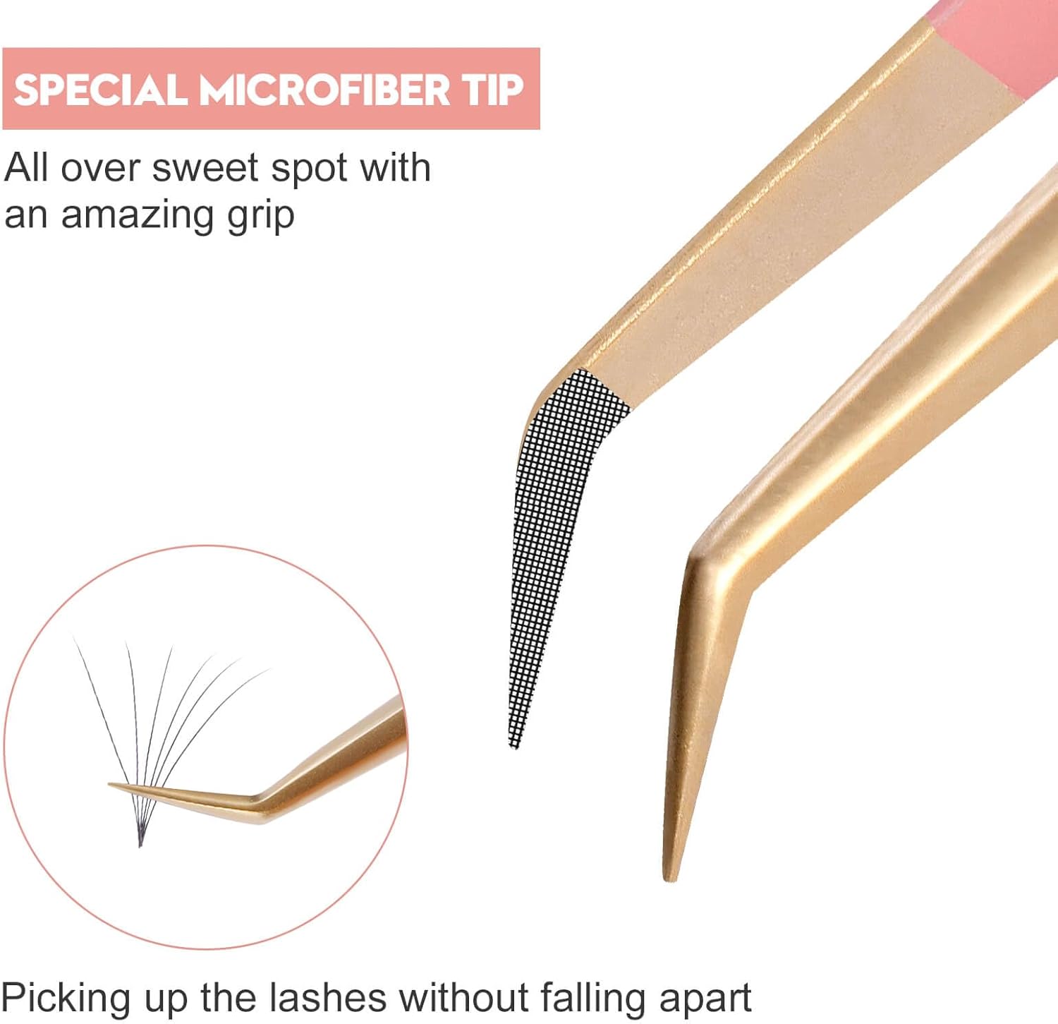- Fiber Tip Lash Tweezers:Specifically designed with a microfiber tip Special microfiber tipโAll over sweet spot with an amazing grip, picking up the lashes without falling apart