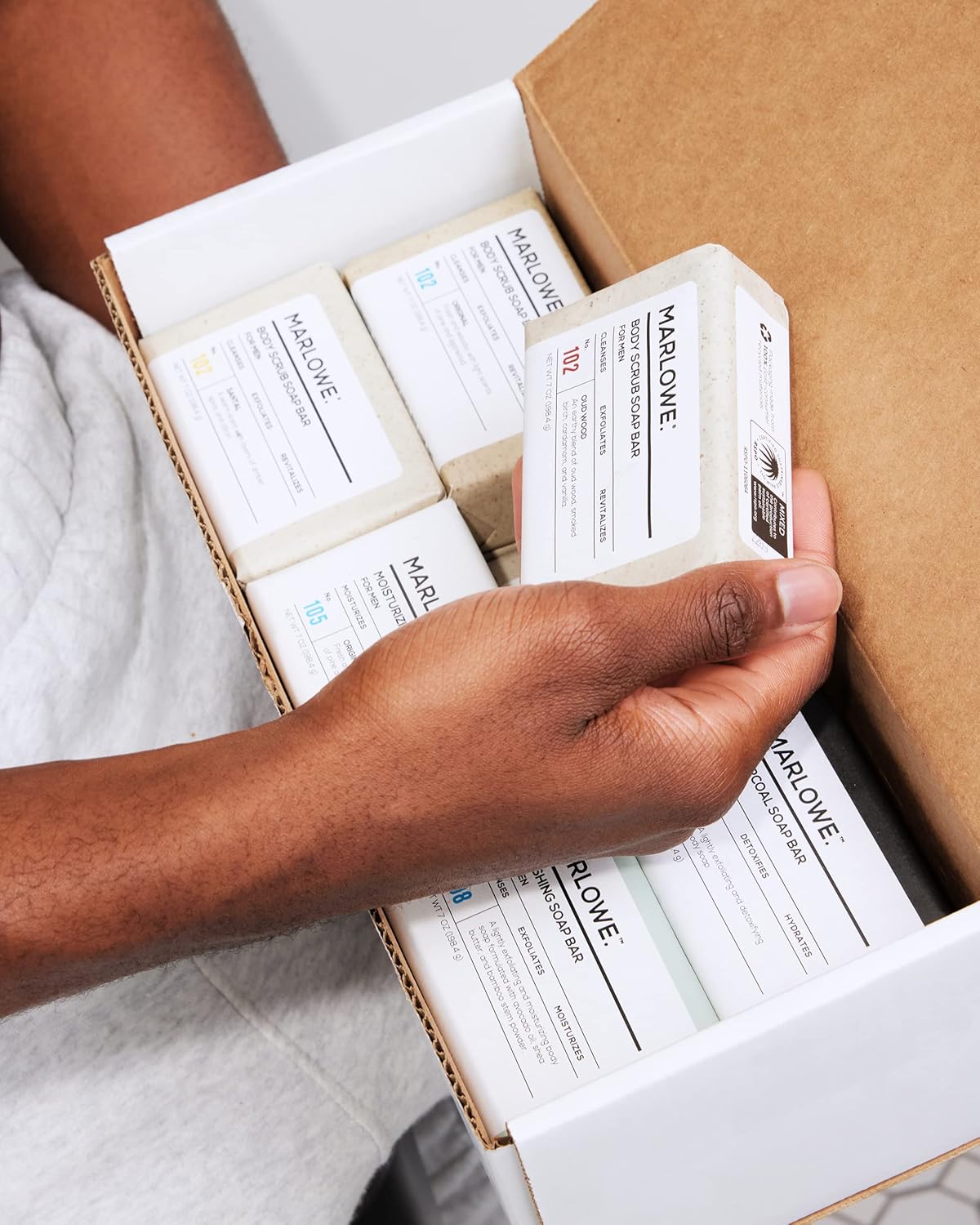 - Body Soap Discovery Pack: This 12 pack soap bar variety offers trial and rotation of 4 bar soap formulas with and without grit, and 4 different manly scents including woodsy Marlowe Original, Oud Wood, Santal and Neroli