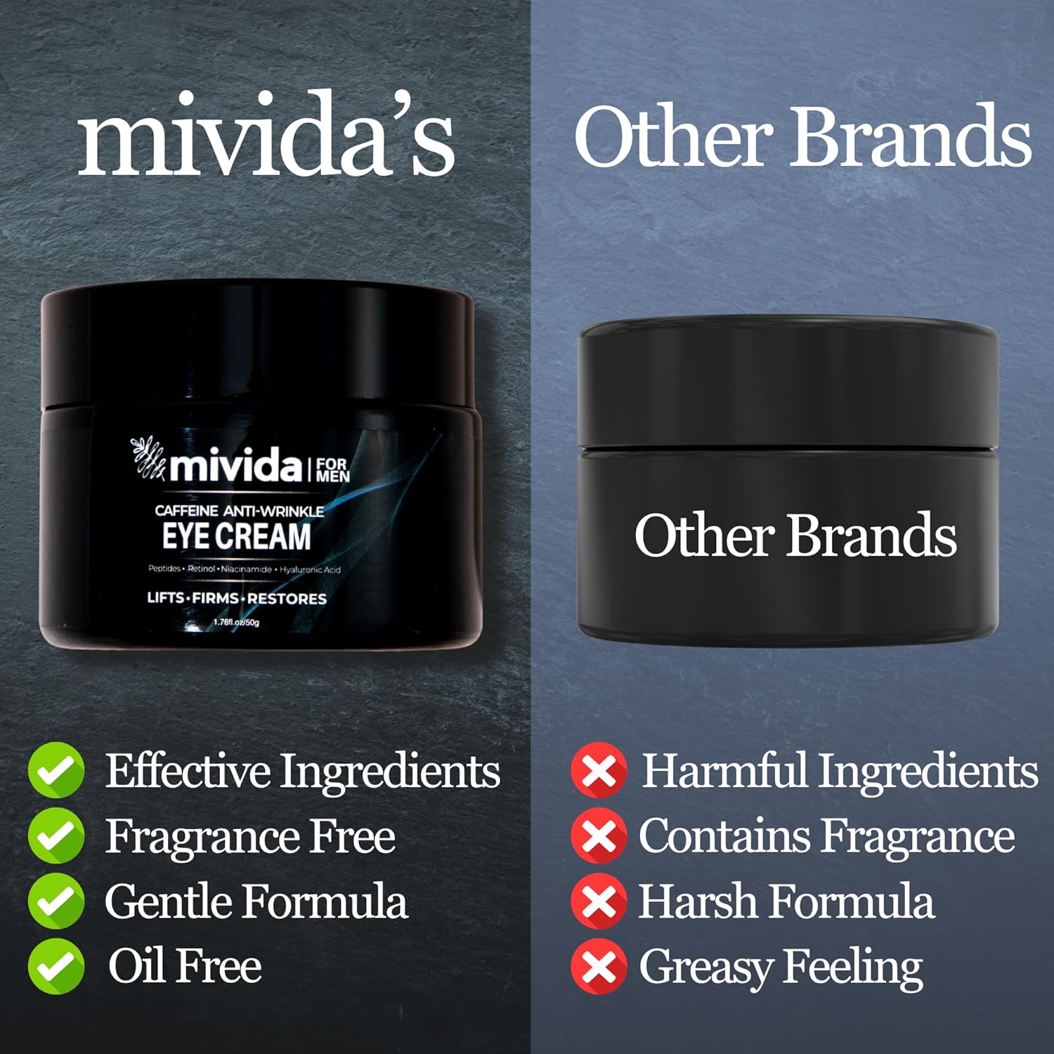 - πΏ Safe and Effective: Our mivida caffeine eye cream is non-comedogenic and free from alcohol, fragrance, GMOs, sulfates, gluten, and parabens. It is suitable for all skin types, including dry, sensitive, oily, combination, and normal skin.