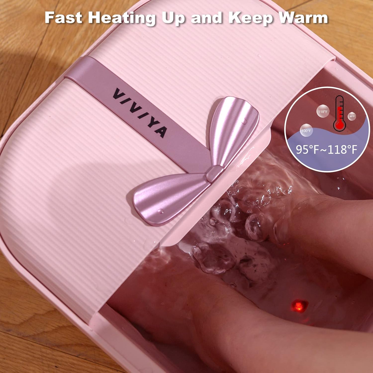 - 【Foot Bath Spa Massager with Heat】With the VIVIYA collapsible foot spa massager, you and your family can enjoy a relaxing foot massage at home at any time. Equipped with massage rollers and shiatsu massage points to reduce pressure on the feet and relax the muscles. This foot bath tub heats up quickly and maintains a temperature between 95°F~118°F when water is added.