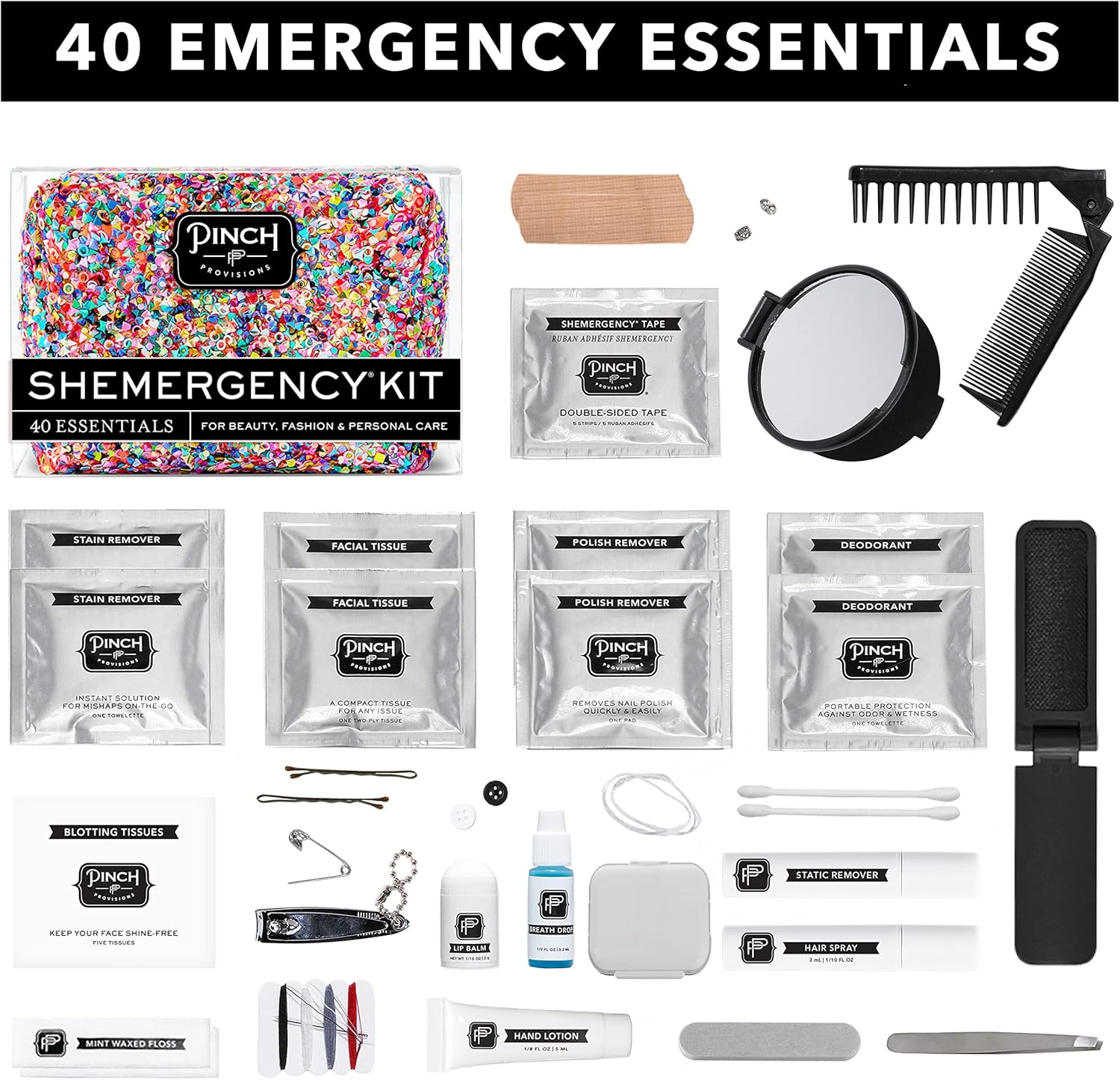Pinch Provisions Shemergency Kit for Her, 40 Emergency Essential Items, Compact, Multi-Functional Pouch, Gift for Women, Birthday, Bachelorette Parties, and More!