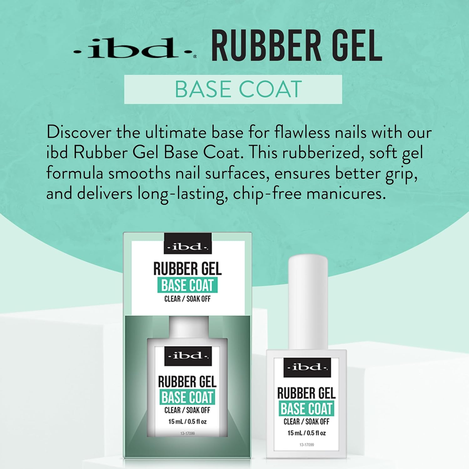 IBD Rubber Base Gel Nail Polish, Base Coat – Clear Soak-Off Builder Gel for Nails Strengthening & Breakage Prevention, 0.5 fl oz