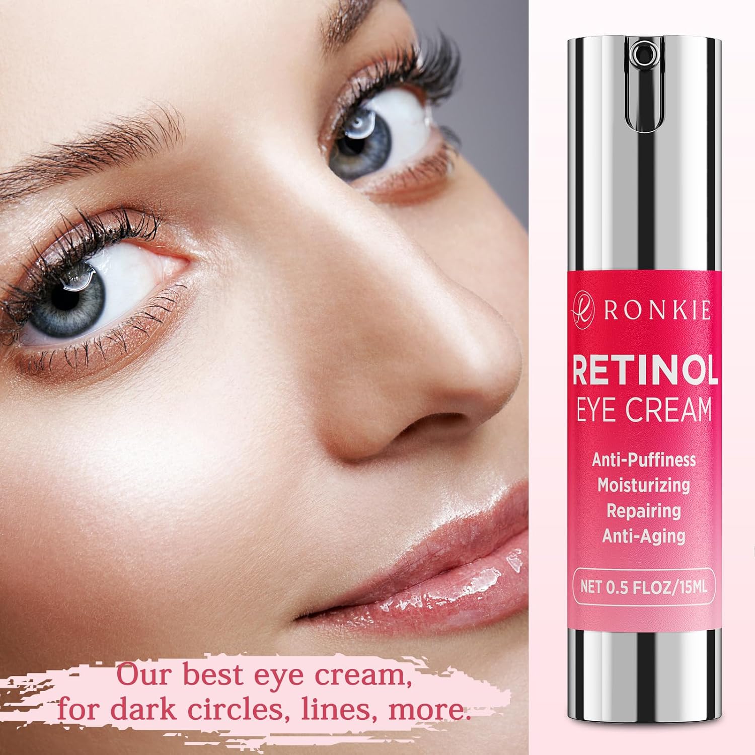 - ✔️Anti Aging eye care: Ronkie Retinol Eye Cream visibly densifies, smooths and boosts the delicate skin around the eyes for the maximum diffusion of light in all its dimensions, targeting puffiness, dark circles, fine lines and wrinkles.