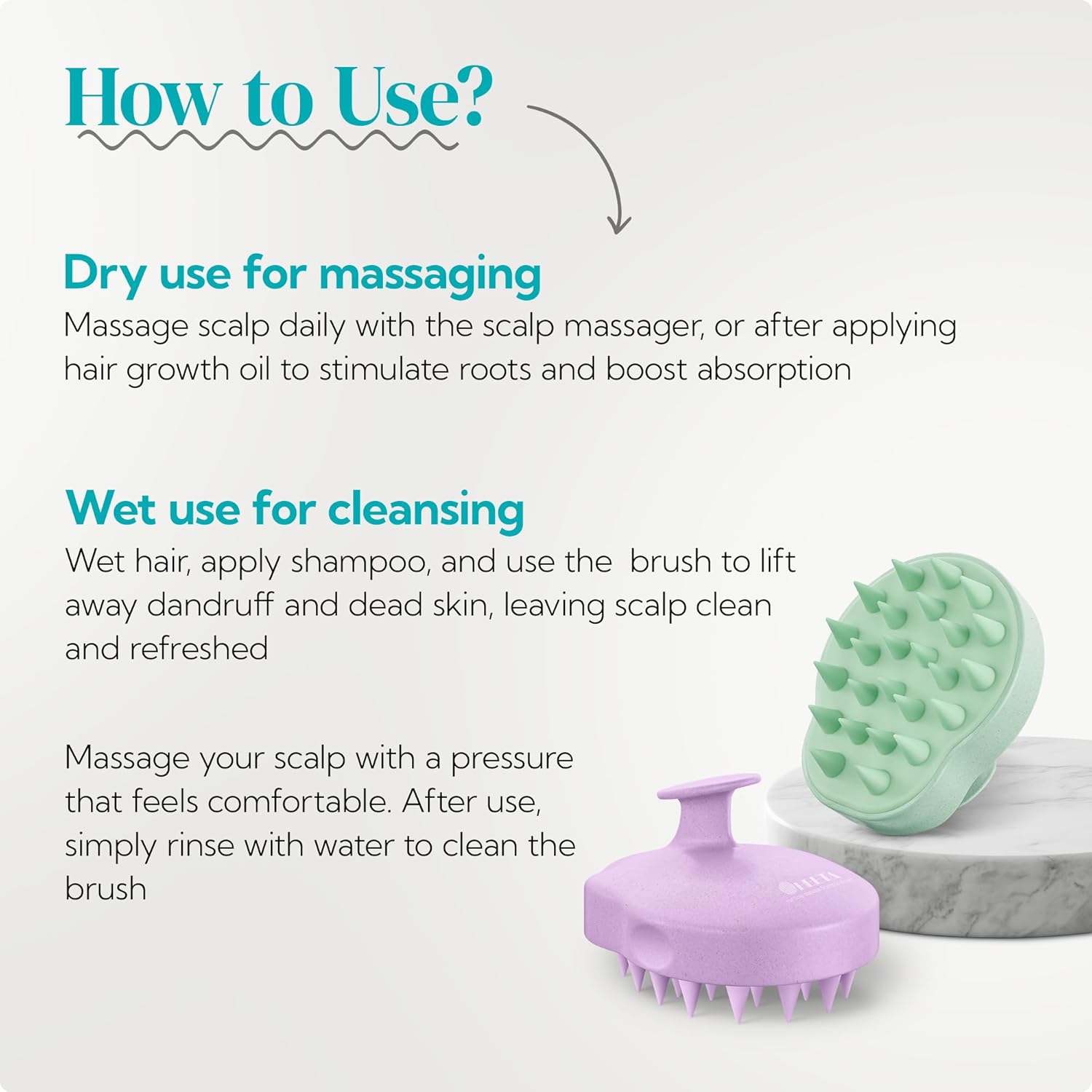 - Enhanced Product Absorption: Using a scalp scrubber shampoo brush can help distribute shampoo evenly throughout your hair and scalp, ensuring that every strand is thoroughly nourished