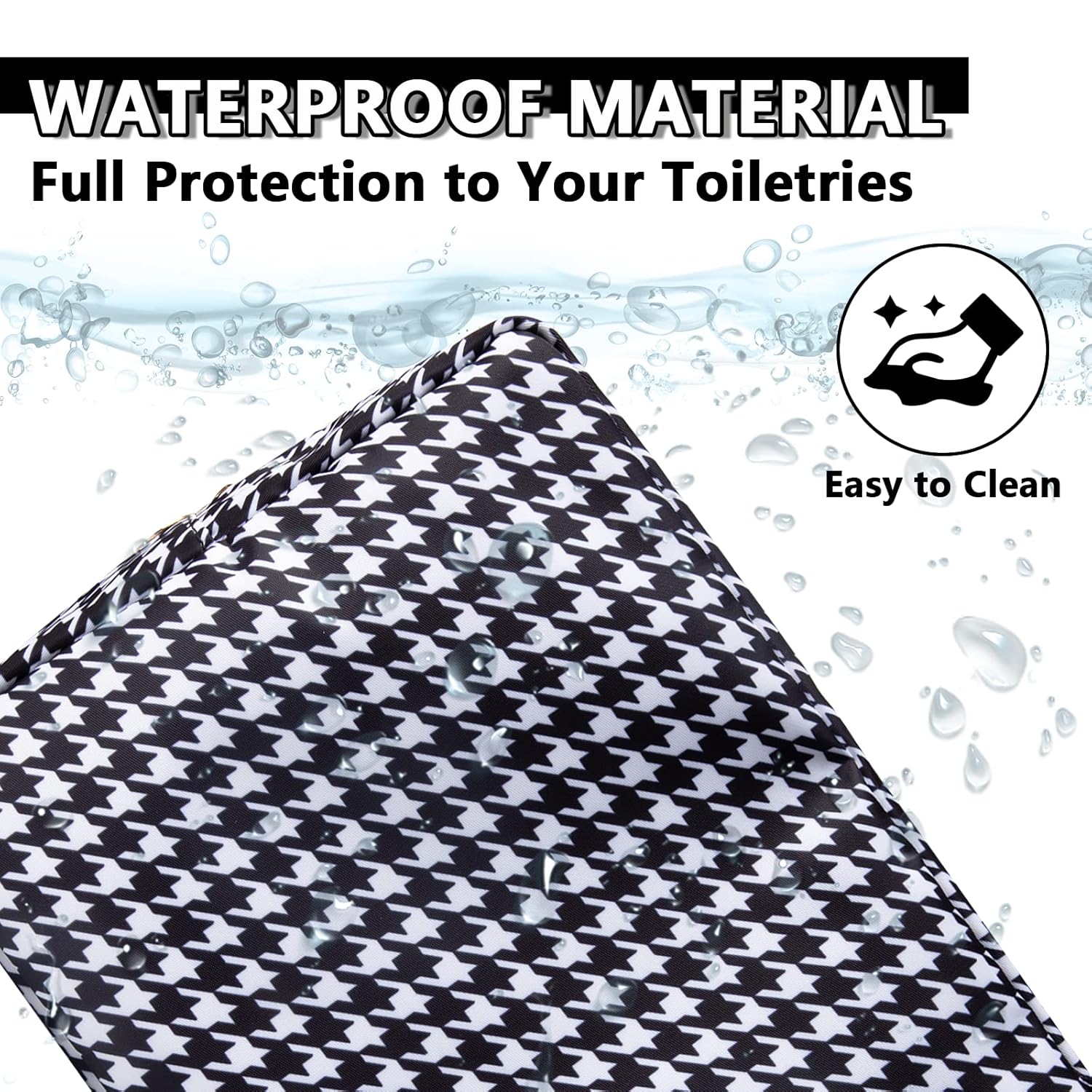 Large Makeup Pouch, Nylon Women Travel Toiletry Storage Houndstooth Cosmetic Bag for Girls, Big Preppy Makeup Organizer Cute Zipper Pouch Skincare Bag for Sport School (Large-Houndstooth)