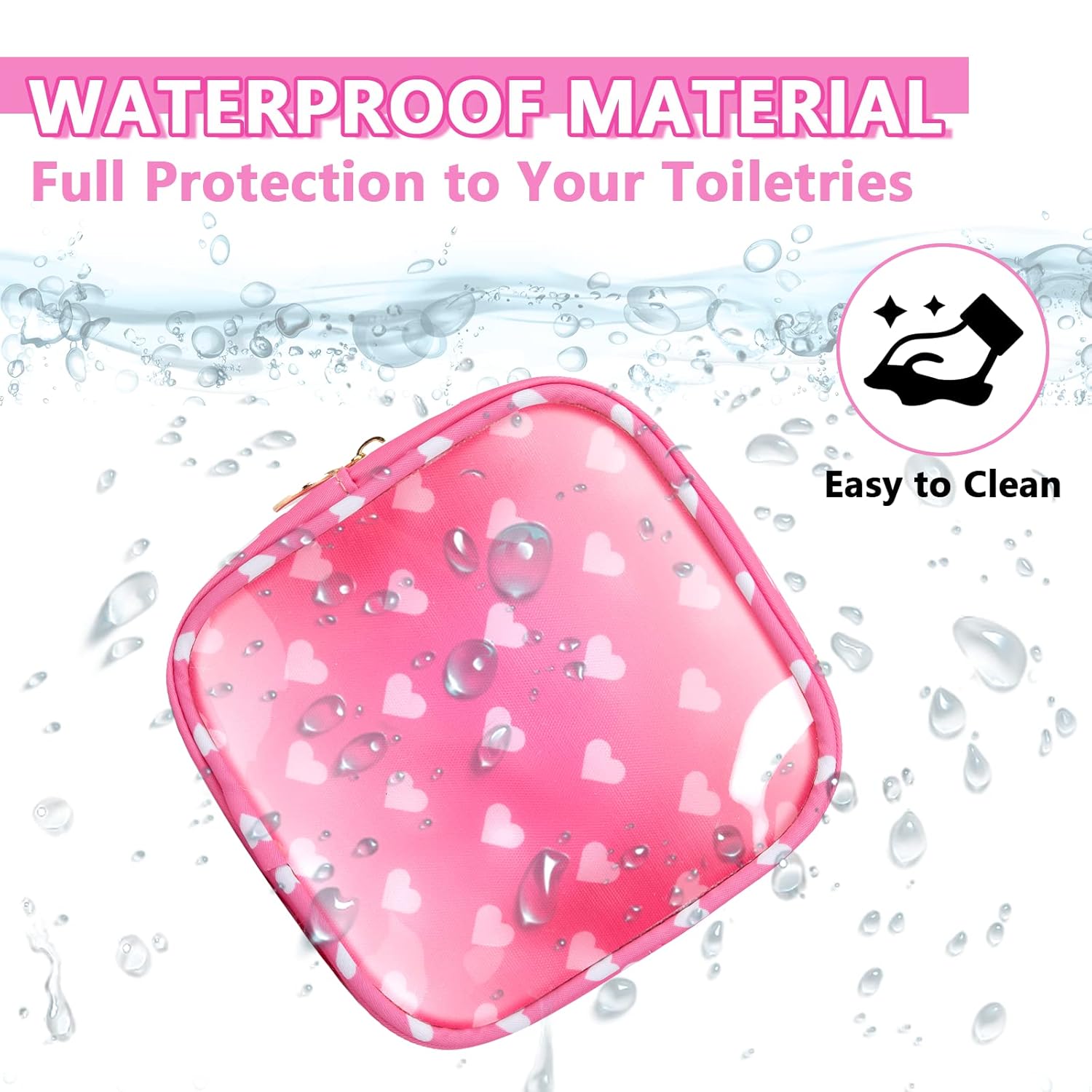 Clear Mini Makeup Bag for Purse, Small Nylon&PVC Cosmetic Travel Bag TSA Approved Toiletry Bag with Zipper, Preppy Transparent Makeup Travel Bag Coin Purse for Women Men Girls(Mini-Pink Heart)
