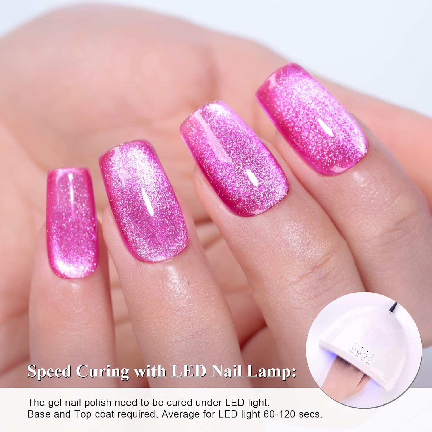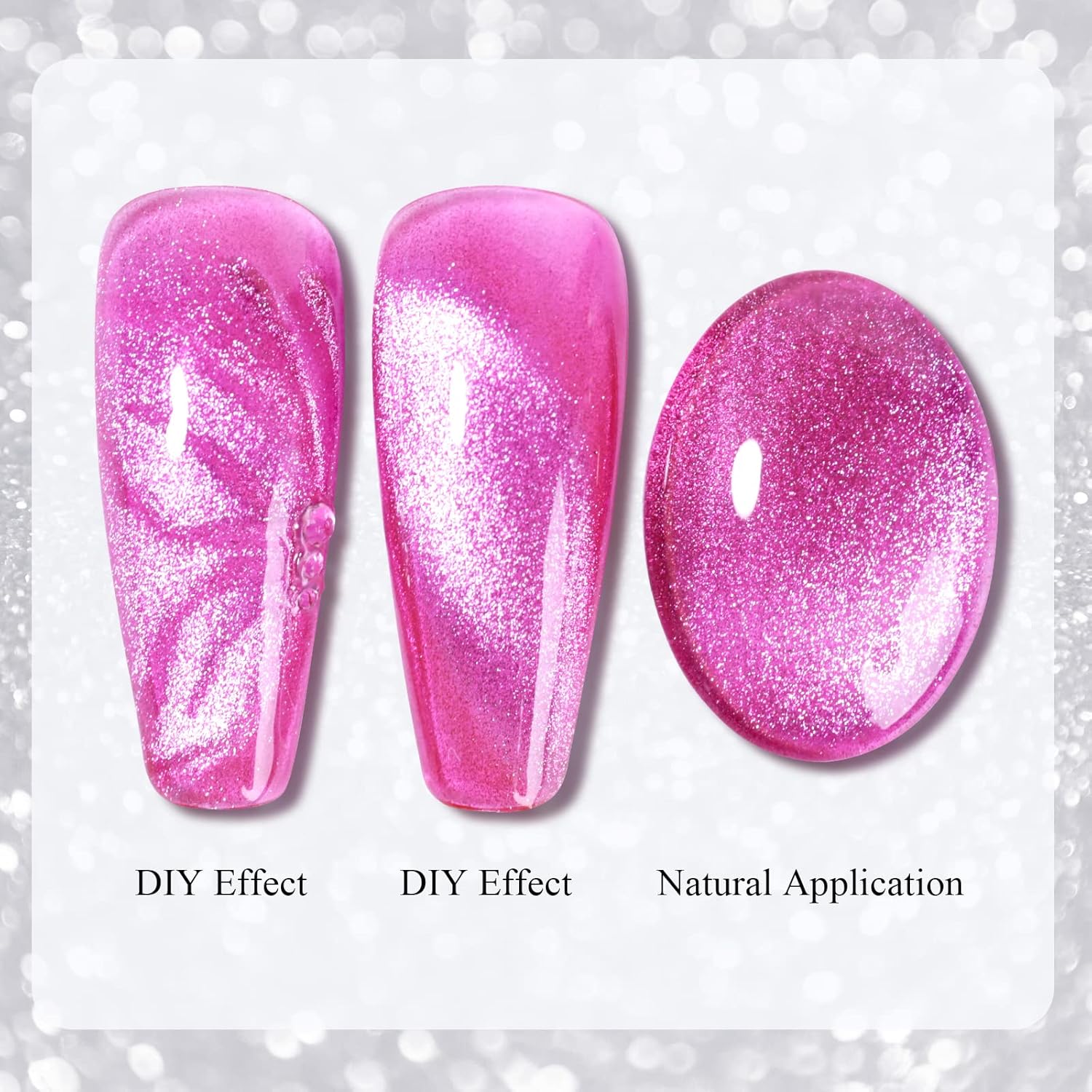 - Tip -You need to use some skills to apply this 9D cat eye gel nail polish, as for beginners, we suggest you can learn more about from videos, the practice can get a satisfying effect.Apply a base coat, two layers of gel polish, and a top coat for best results