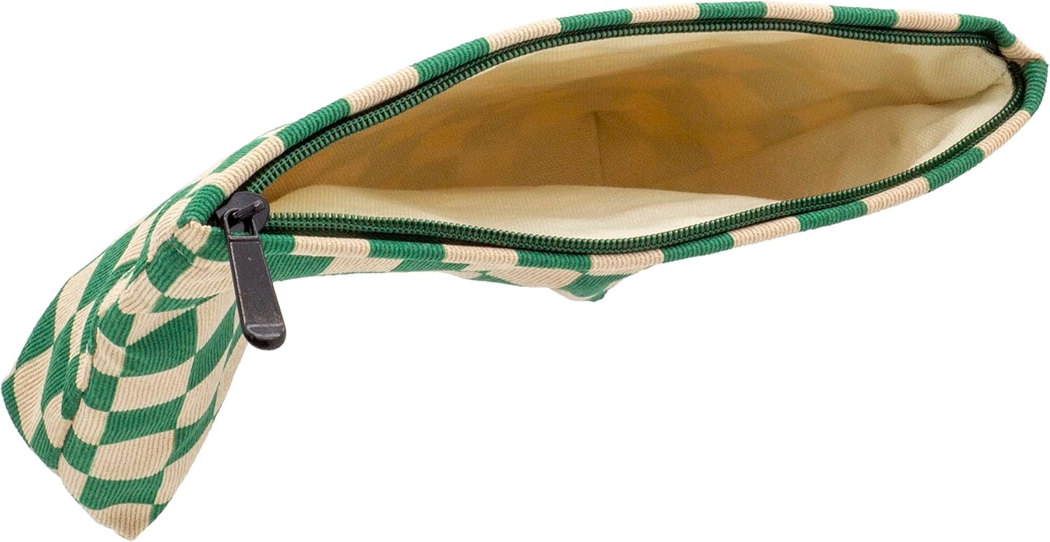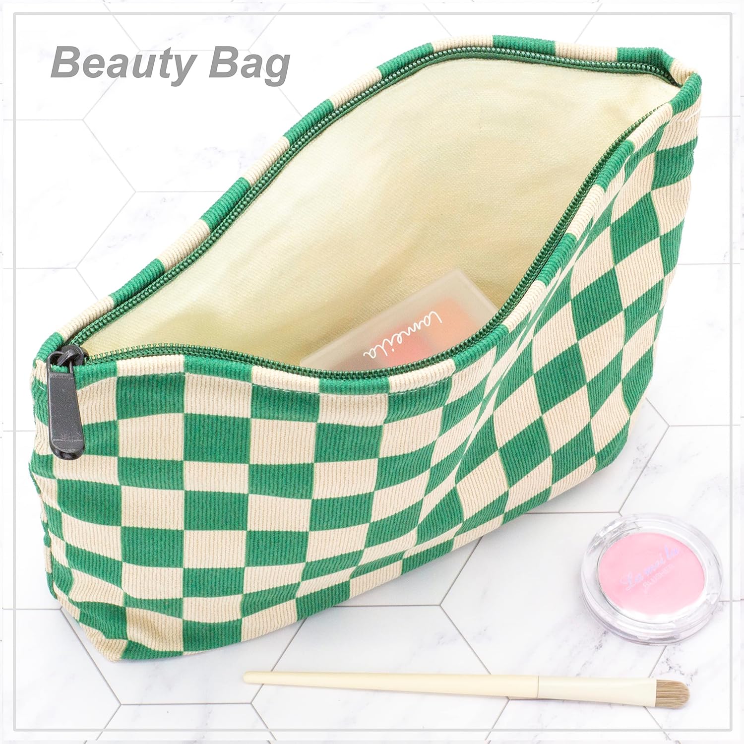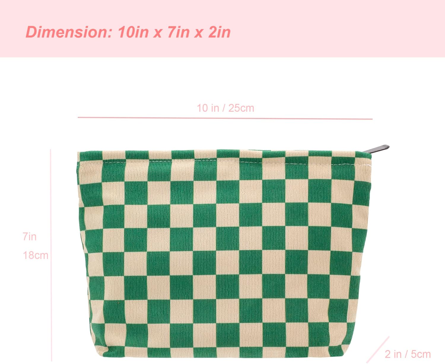 PAZIMIIK Makeup Bag Large Zipper Corduroy Make Up Pouch for Purse Travel Canvas Cosmetic Organizer for Women Brush Storage,Checkered Green