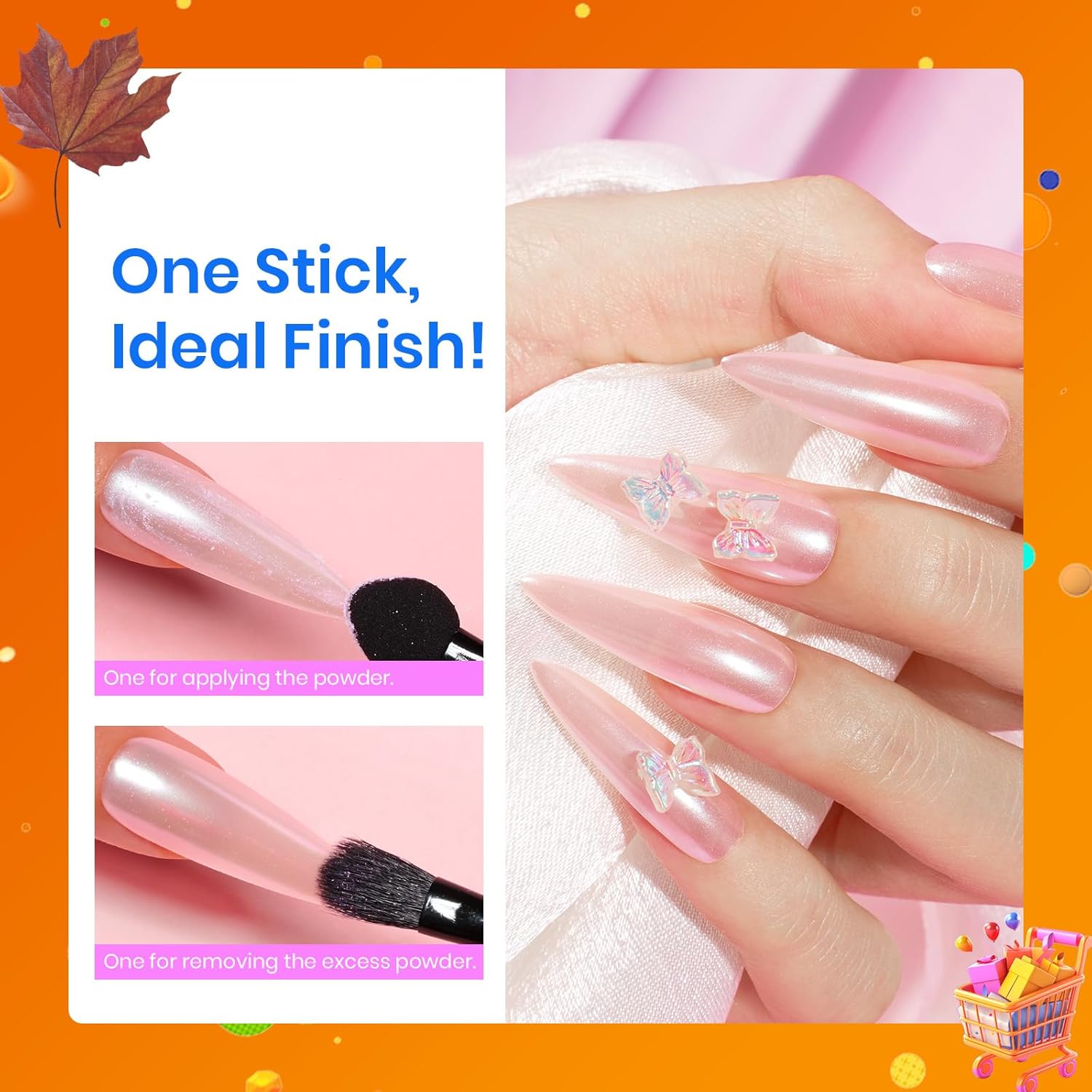 Beetles White Chrome Nail Powder for Gel Nails Pearl Cromer Nail Powder Mirror Effect Nails Gel Polish Glitter Manicure Holographic Pigment Nails Art Design Gifts for Women