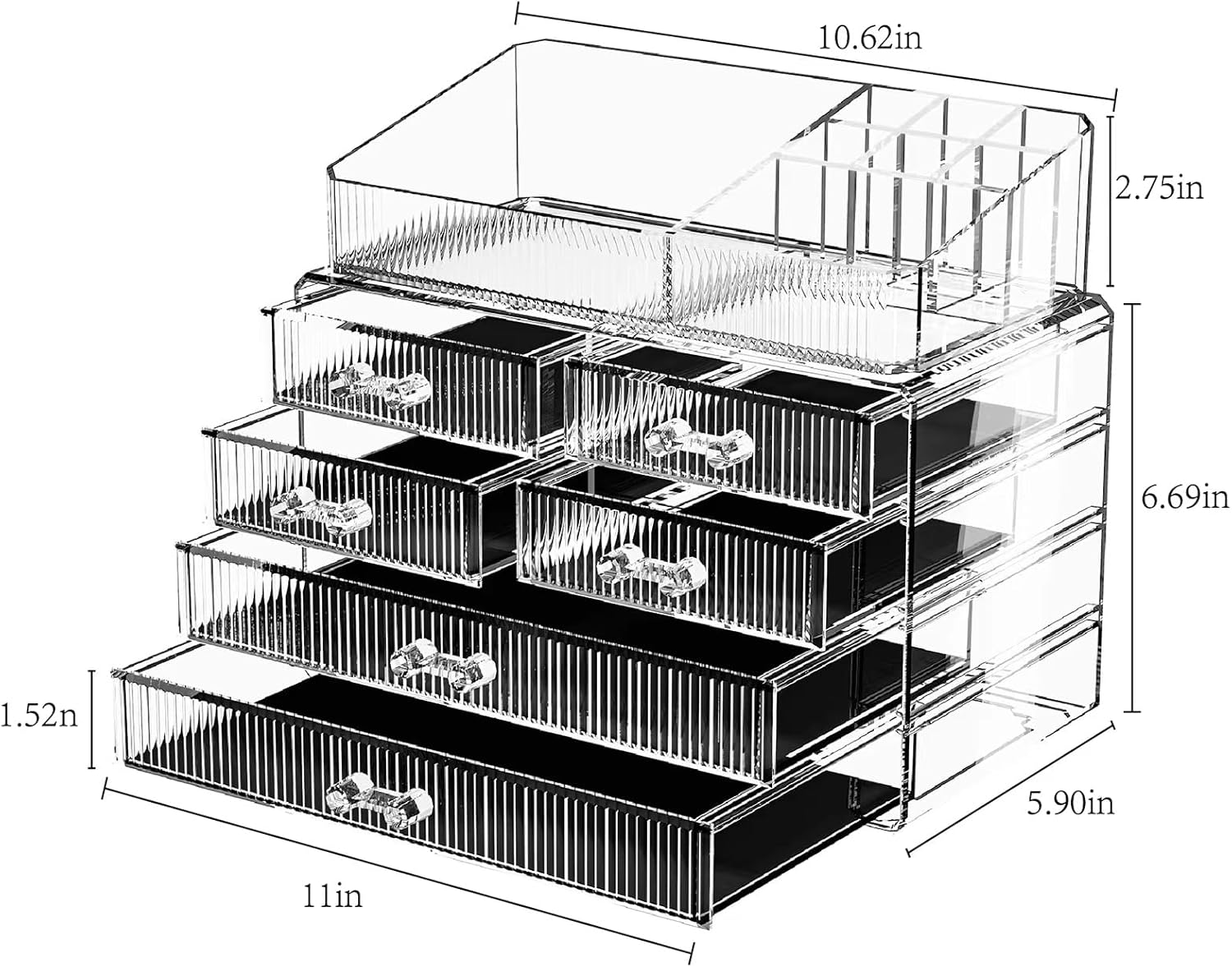 - The makeup organizer for vanity is also stackable, allowing you to easily add additional organizers as needed to create a customized storage solution. It is also perfect for use in the office, bedroom, or anywhere else you need to keep your items organized and easily accessible.