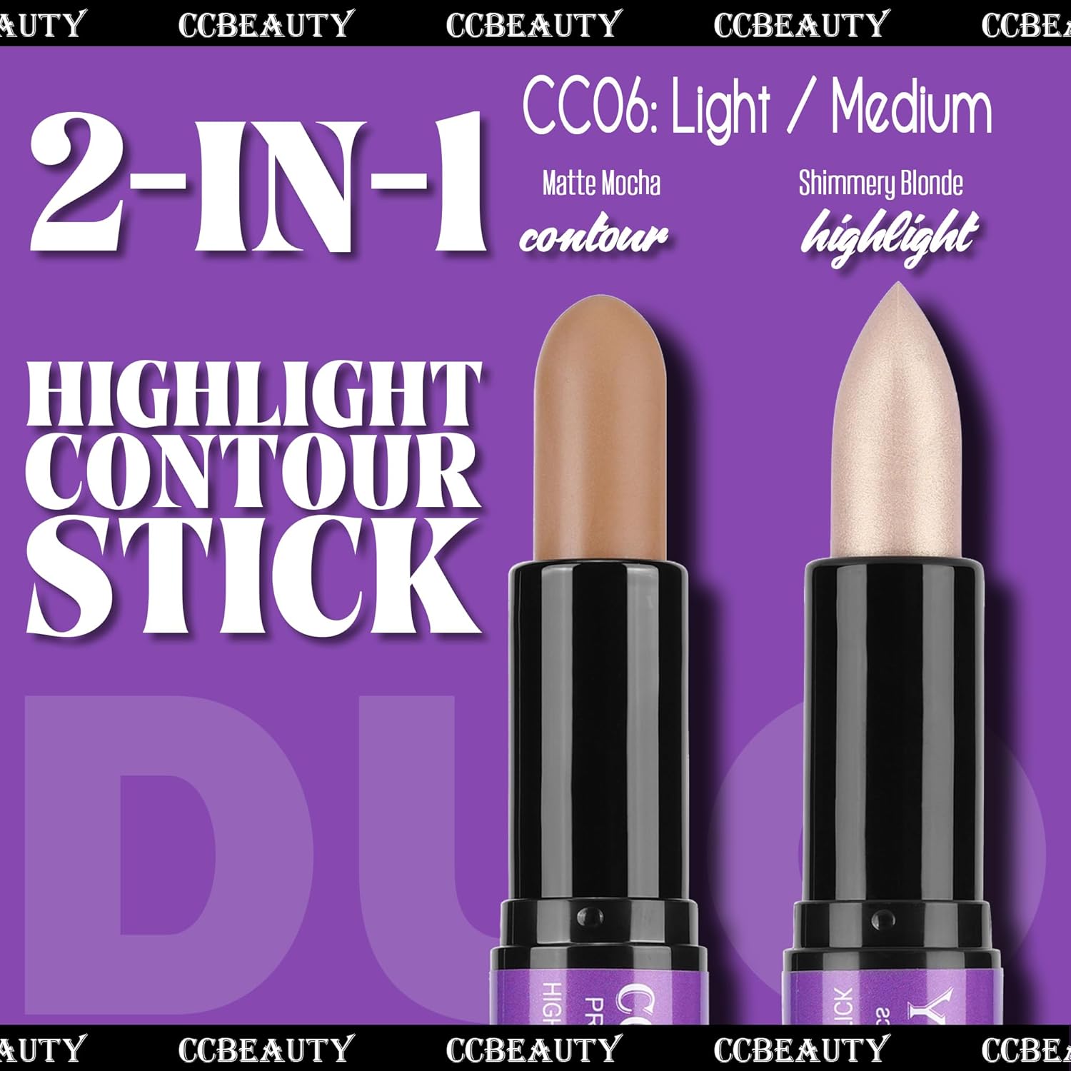 CCbeauty 2-IN-1 Contour Stick Makeup,Cream Shimmer Highlighter Bronzer Stick, Highlighting Contouring Kit, Highlight Concealer Sticks for Face Shaping Make up, Long Lasting & Waterproof