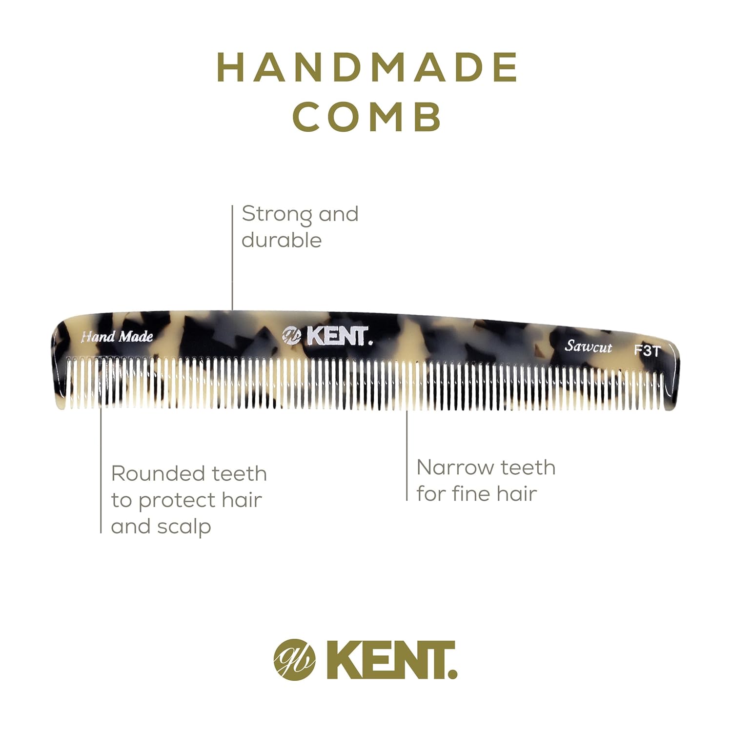 Kent F3T TW Fine Tooth Comb for Hair Parting, Handmade Combs for Men and Straightening Comb for Women, Dandruff Remover Kent Mens Combs for Fine Hair