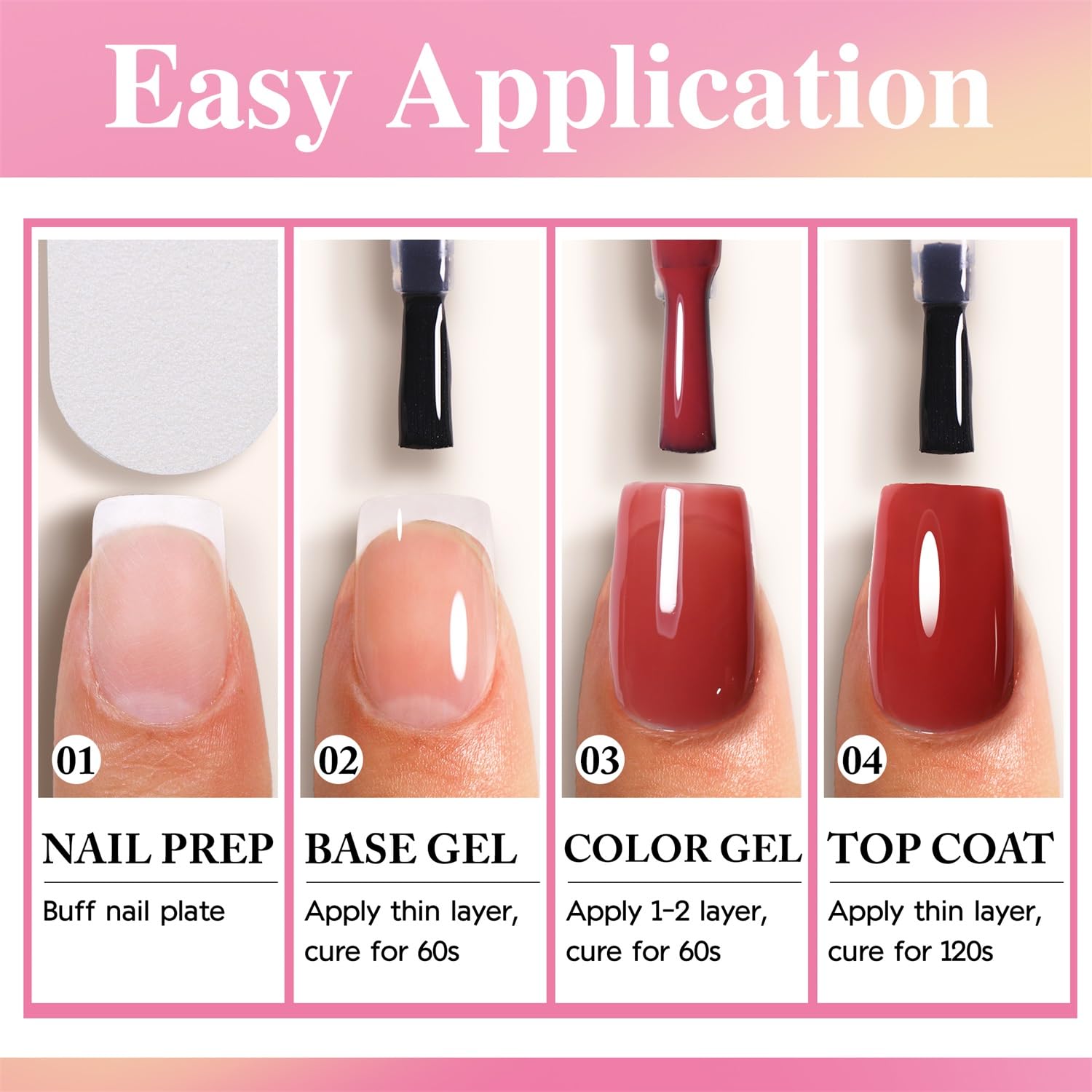 - 28+DAYS LONG LASTING: Gel nail polish is super easy to apply even for the beginner, the effect lasts long for 28+ days and brings you high gloss shine under proper application. You will have a beautiful and long-lasting manicure style. No worry about your beloved nails design will peel off easily.