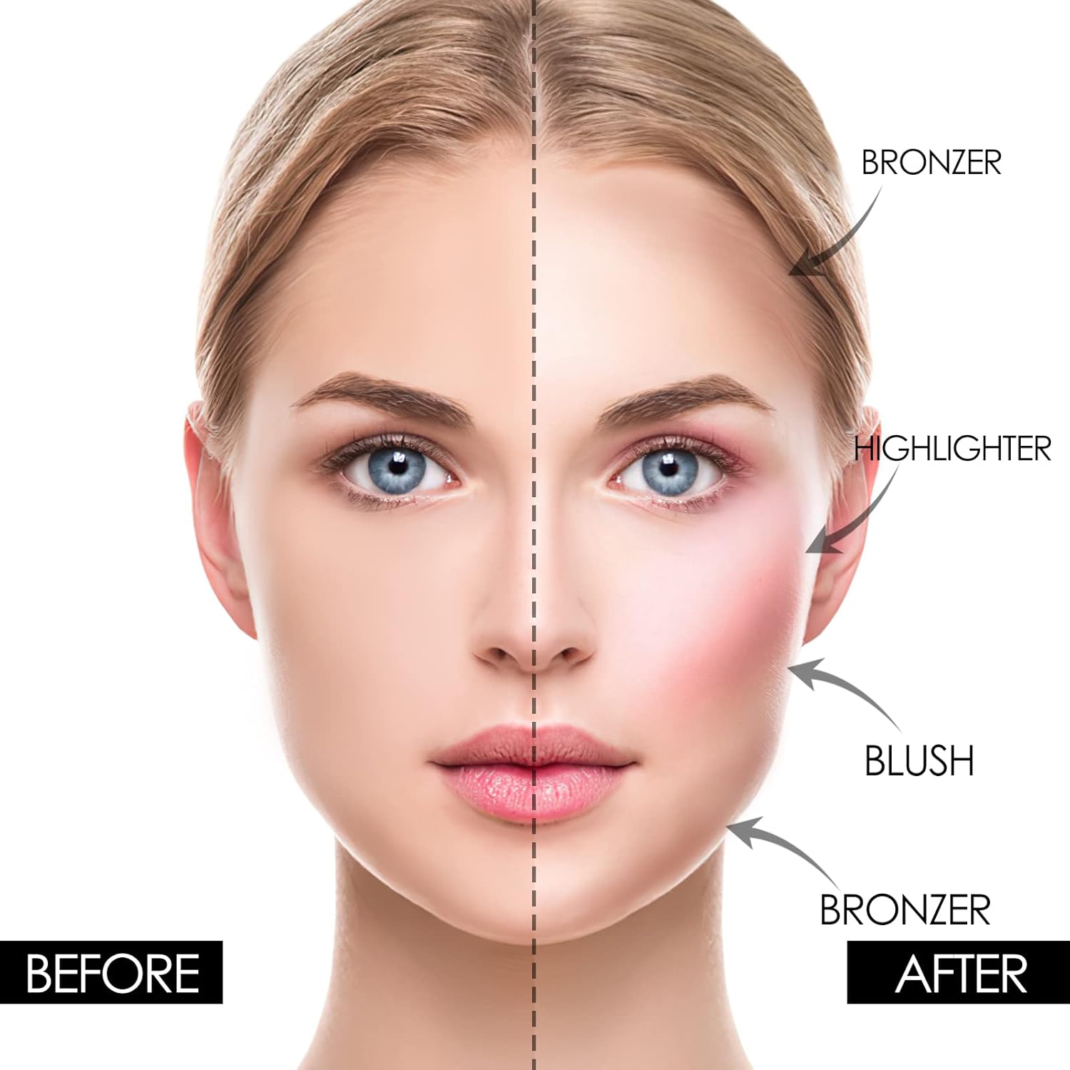 - 【WATERPROOF & LONG-LASTING】The blush highlighter powders have high pigments.In addition, it is waterproof, sweatproof and not easy to smudge. So the cheek powder can last a long time on your face.Shape, outline and highlight your best facial features.