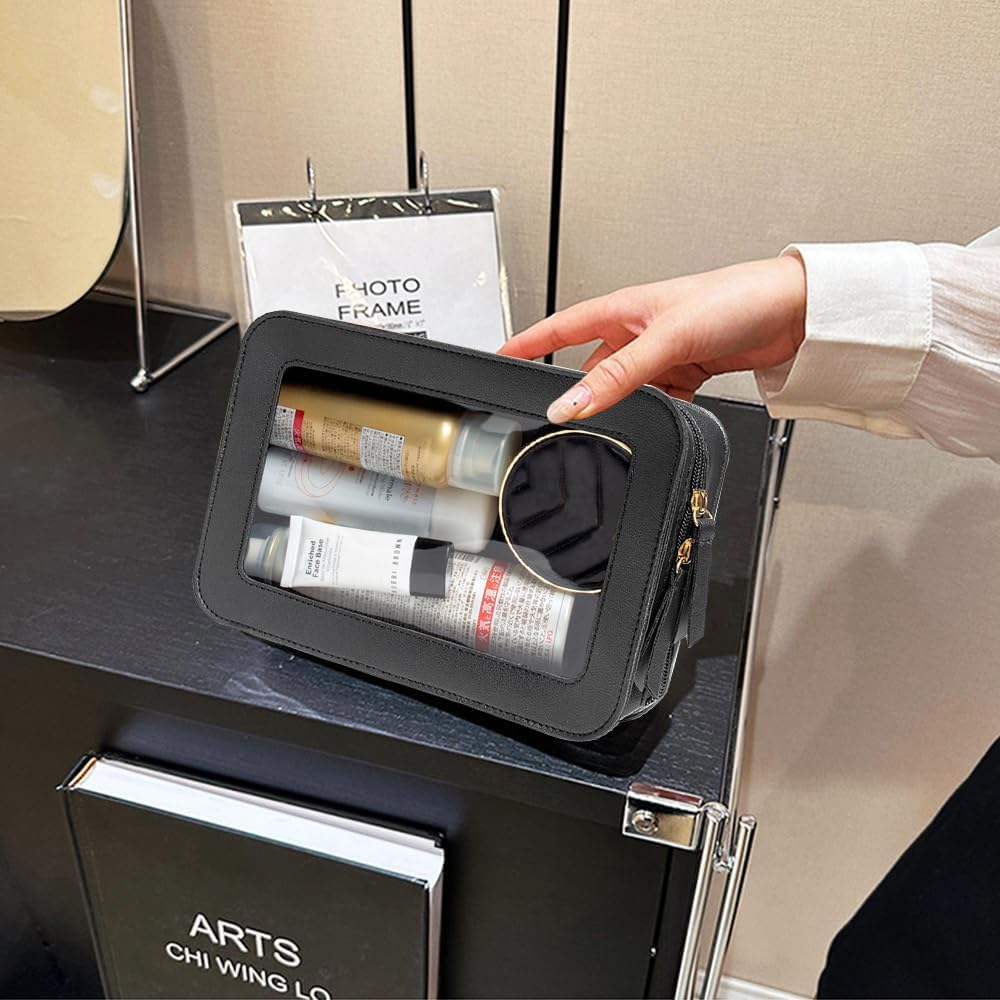 - Clear Design: Our clear toiletry bag is sleek and minimalistic look for your makeup accessories collection. And is designed with a clear PVC window,all items are clear at a glance, and you can quickly choose the cosmetics you need. Size:9.44“*6.1”*2.75“