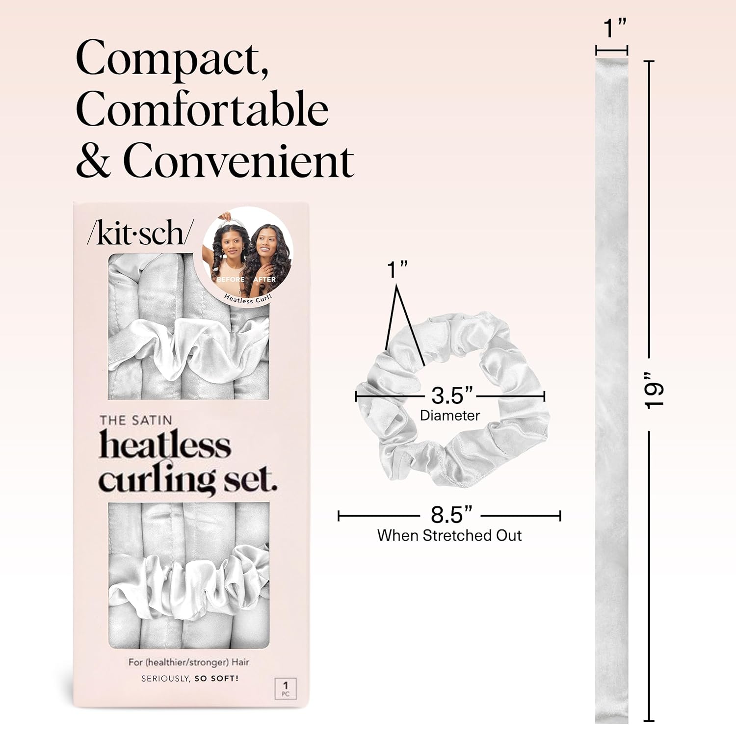 - BYE-BYE HAIR DAMAGE: Protect your hair from heat damage with the Kitsch Overnight Hair Curler. This set includes a curling rod and two satin scrunchies, all wrapped in premium satin fabric to keep your hair smooth and frizz-free while creating gorgeous, heat-free curls.