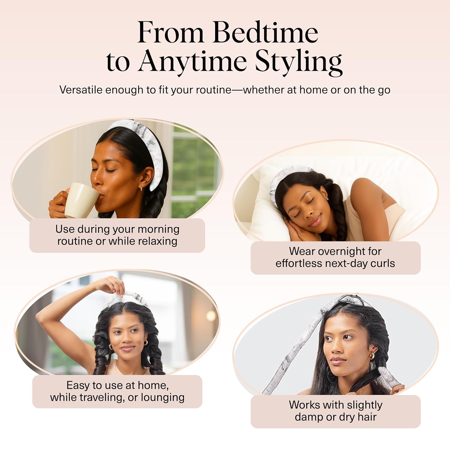 - PERFECT FOR ALL HAIR TYPES: Whether your hair is straight, wavy, long, or medium-length, this versatile overnight curler fits them all! Ideal for teens and adults alike, it’s the best heatless curling solution for achieving salon-worthy curls. Check our size chart for a perfect fit!