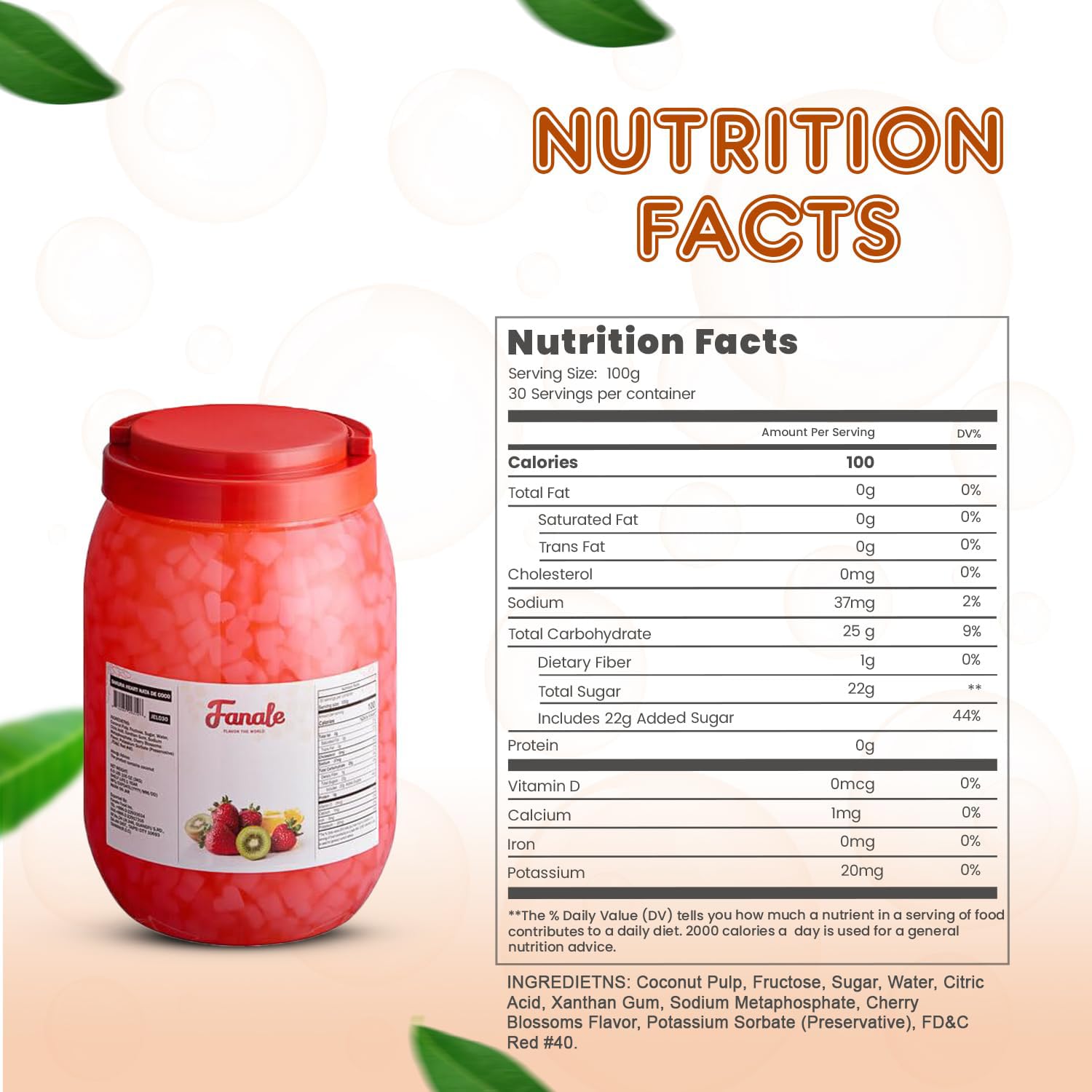 Fanale Coconut Jelly Topping nata de coco for Boba Tea | Ice Cream | Yogurt | Smoothie | Milk Tea | Desserts (Sakura Heart Shaped, 6.6 lb) JEL030