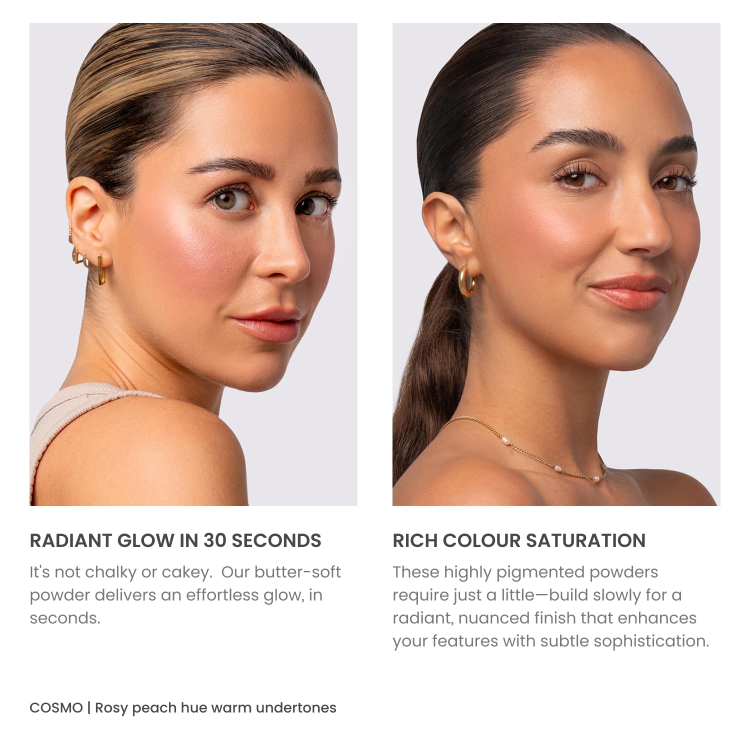 Phase Zero Makeup Powder Blusher - "Cosmo" - 4g / 0.141 oz - Full Coverage, Natural Blush - Soft, Buildable Pink, Coral, Peach & Golden Hues - Matte & Shimmering Shades Gives Cheeks a Radiant Glow