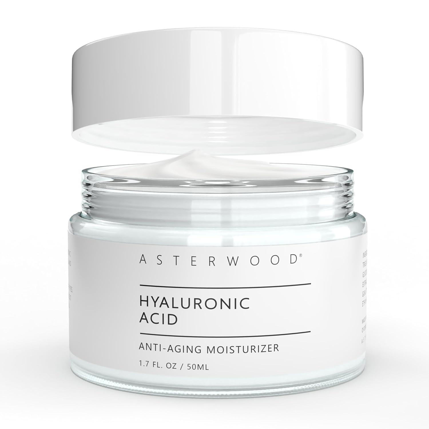 Asterwood Hyaluronic Acid Moisturizer - Anti-Aging, Wrinkle Reducing, Moisturizing, Hydrating - Fragrance-Free, Non-Comedogenic - 1.7 Fl Oz
