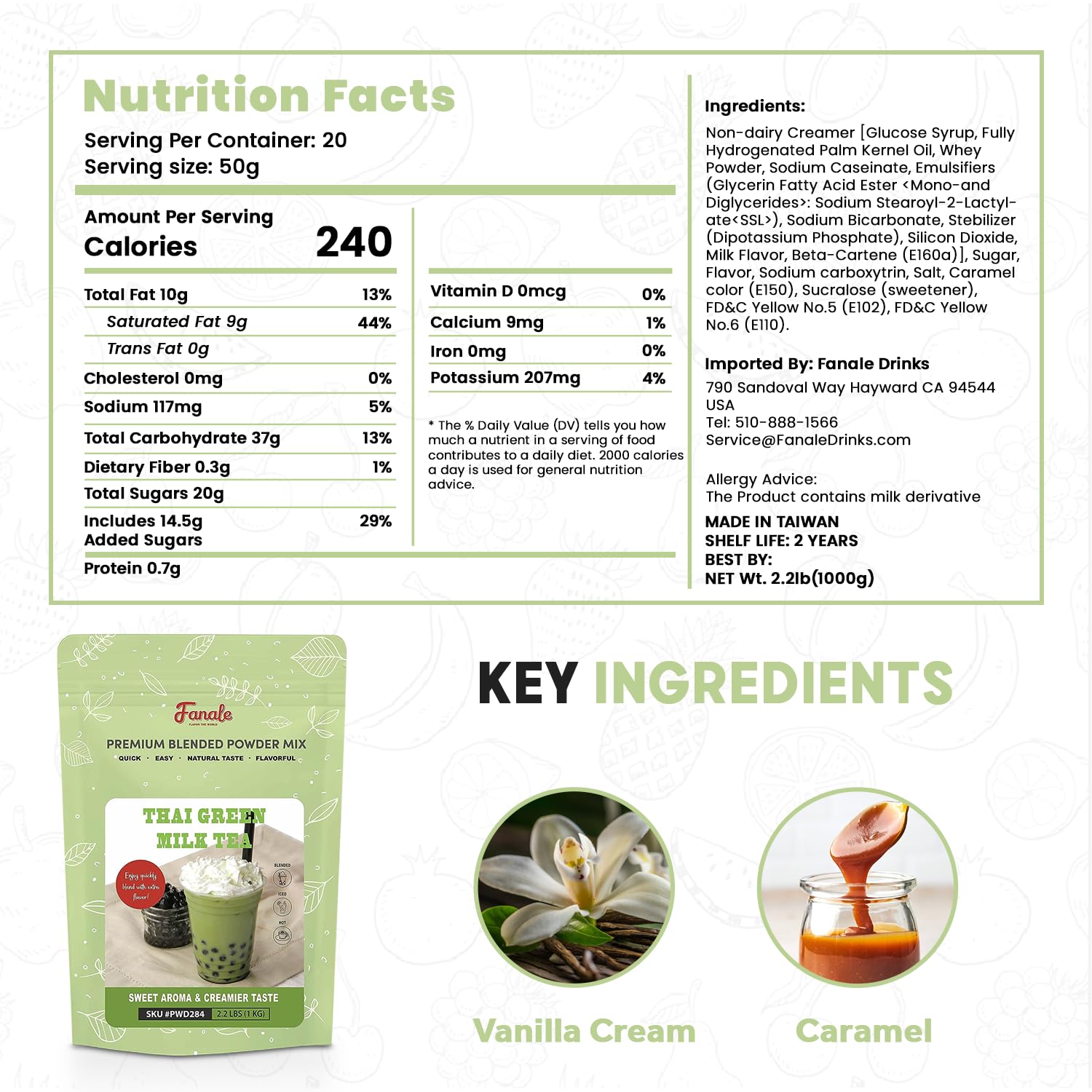 Fanale Premium Thai Green Bubble Tea Flavoring Powder for Boba Tea| Perfect for Baking, Smoothies, Desserts and Drinks | Instant Boba Bubble Tea Powder for Milk Tea - 2.2 Pounds (Pack of 20)