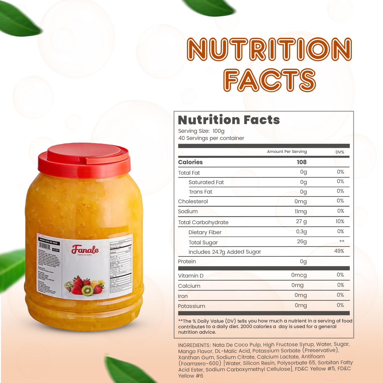 Fanale Coconut Jelly Topping nata de coco for Bubble Tea 8.3 lb | Mango Jelly | for Boba Tea, Smoothies, Slushes, Desserts | 8.3 pound (Pack of 4) | JEL003-CS