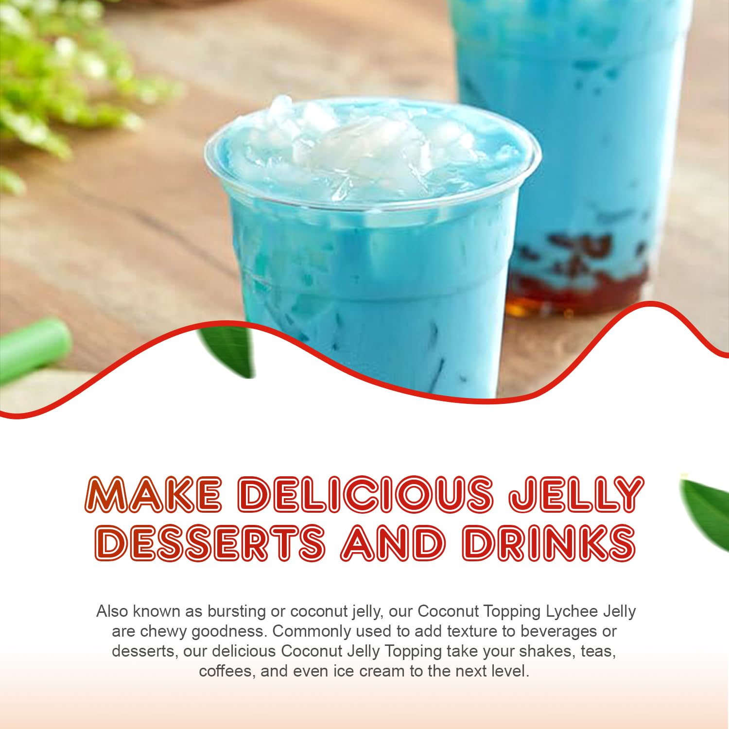 - ๐๐ง๐ข๐ช๐ฎ๐ ๐๐๐ฑ๐ญ๐ฎ๐ซ๐: This coconut jelly topping has a jelly-like consistency thicker than gelatin, providing a unique and compelling texture for drinks and desserts. The coconut jelly with nata de coco distinct feel enhances the overall sensory experience of the beverages or dishes it's added to.