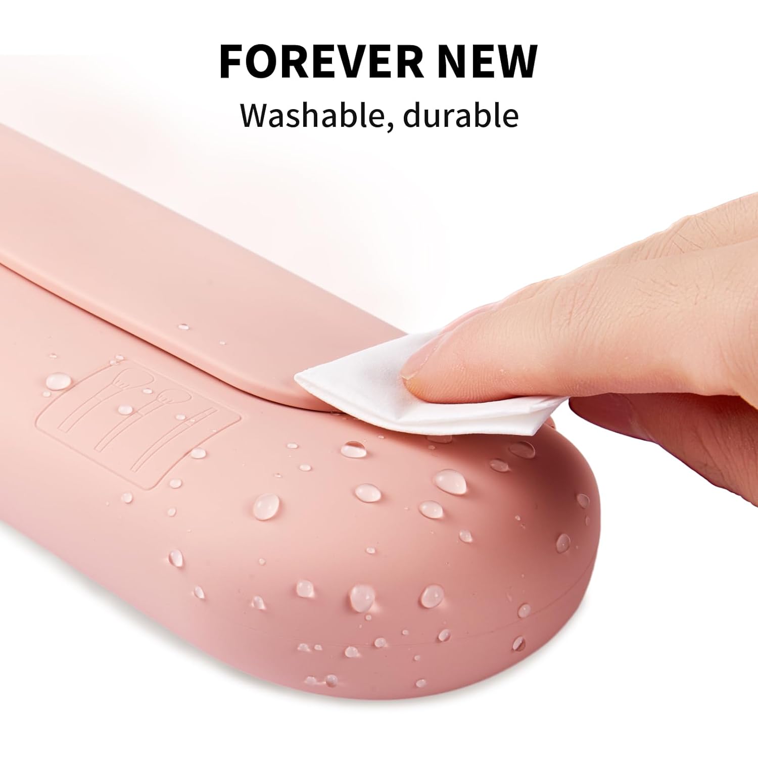 Silicone Makeup Brush Holder Travel Cosmetic Bag:Soft Portable Cosmetic Face Brushes Holder with Upgrade Anti-Fall Out Magnetic Closure, Large Travel Makeup Brush Case - Pink Sand