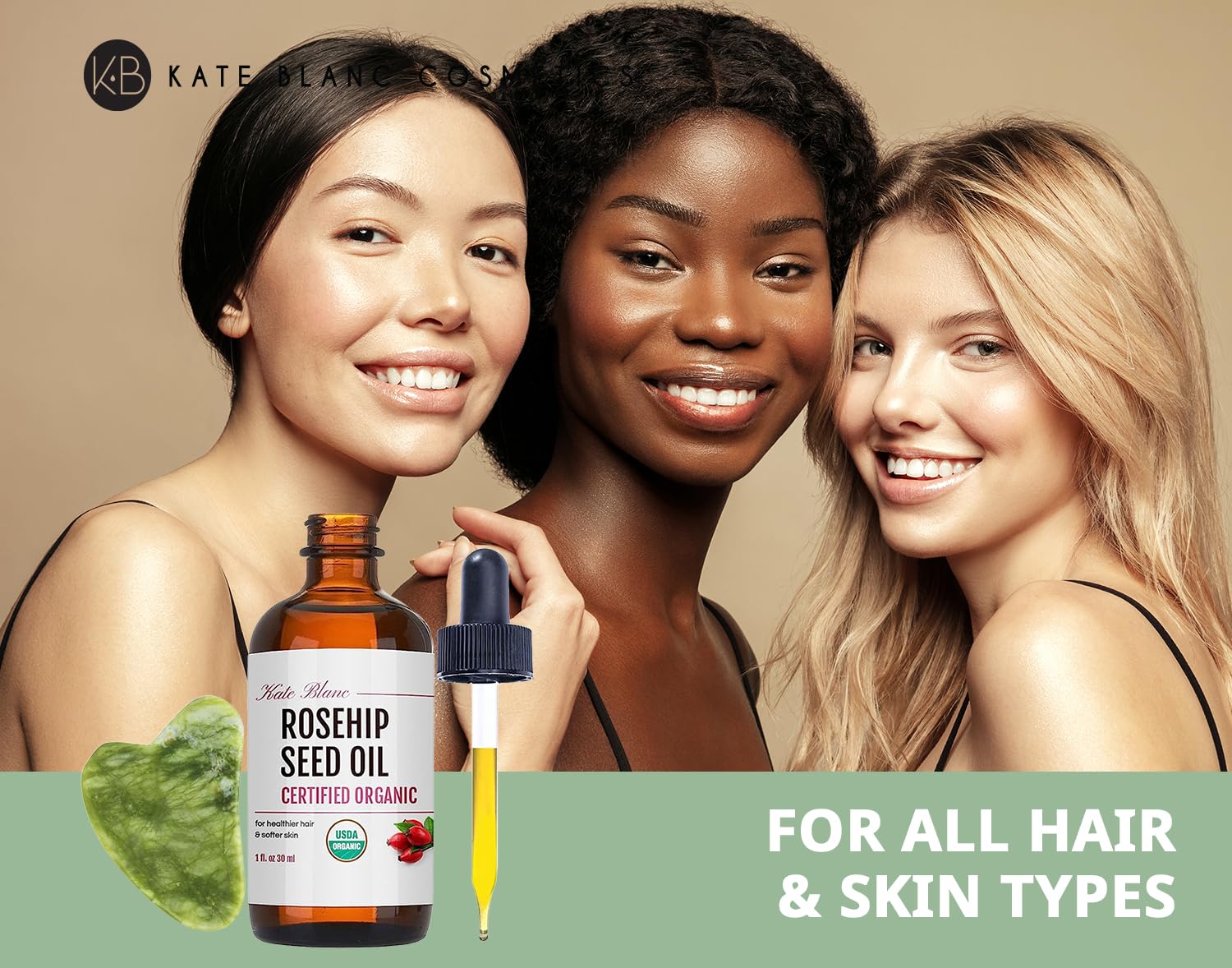 - NATURAL, NON-GREASY MOISTURIZER FOR SOFTER SKIN: Kate Blancโs Organic Cold-Pressed Rosehip Oil is a lightweight, fast-absorbing facial oil that hydrates and revitalizes the skin. Packed with omega-3, omega-6, and essential fatty acids, this natural oil is a great addition to your daily skincare routine. It supports a smoother, more radiant complexion and helps improve the look of dry, uneven skin for a healthy glow.