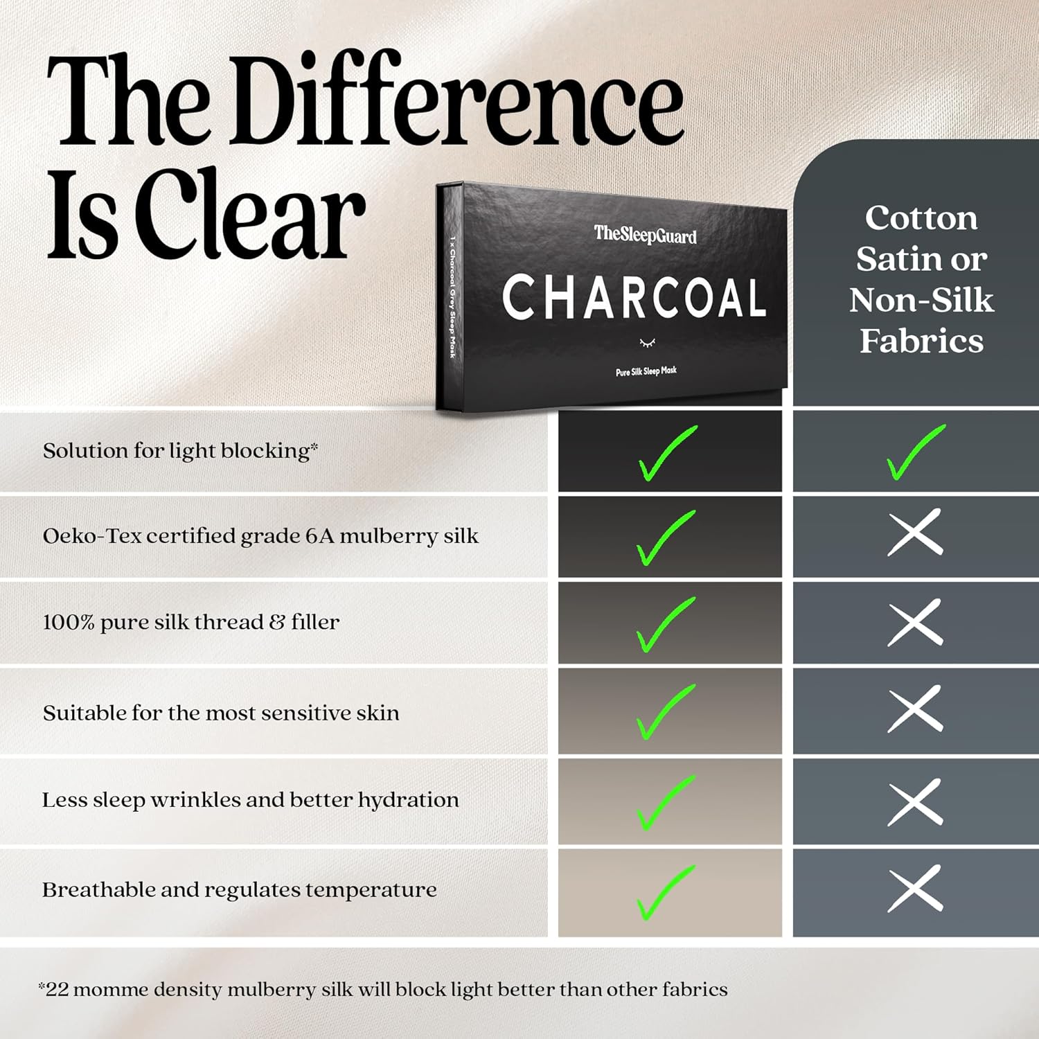 - โ INVEST IN YOUR SLEEP - Experience TheSleepGuard difference with our luxury sleeping masks. Crafted from the highest grade 6A Mulberry silk at 22 momme and certified by Oeko-Tex to ensure you sleep soundly. Remember, better sleep leads to a better you.