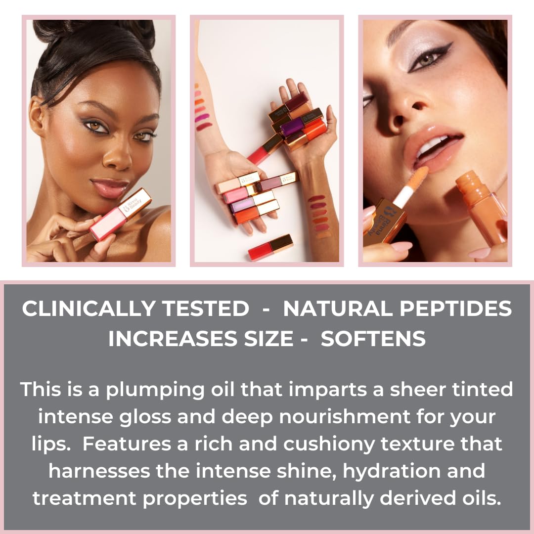 • PLUMPING PEPTIDE HYDRATION: Larger than Life lip plumping oil is super glossy, sheer tinted deep nourishment for your lips. Extreme hydration from natural oils for a cushiony texture.