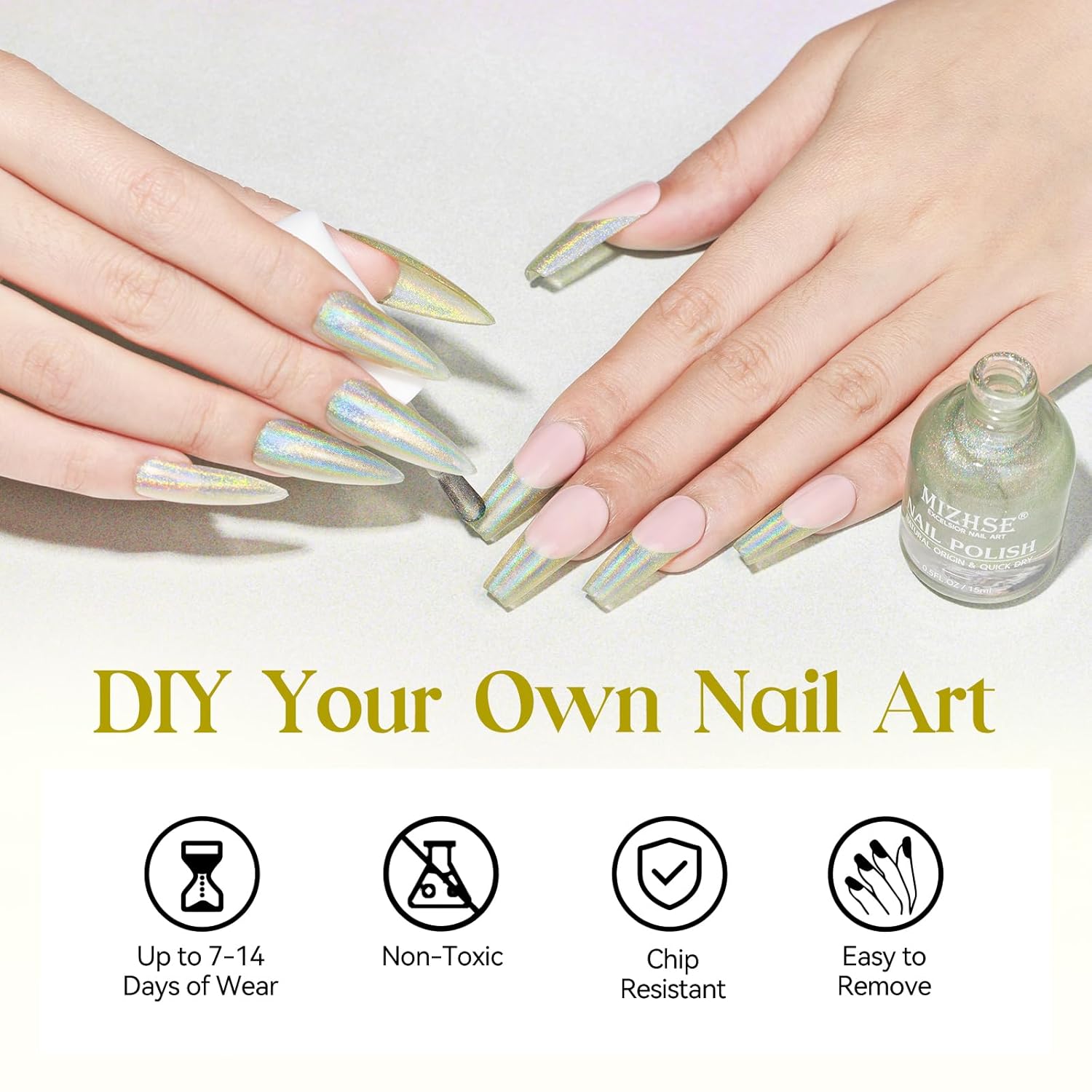 MIZHSE Holographic Nail Polish, Glitter Nail Polish Air Dry Fast, 15 ml High Glossy Shiny Nail Pigment Oil-based Laser Iridescent Chrome Nail Art Salon Manicure Home