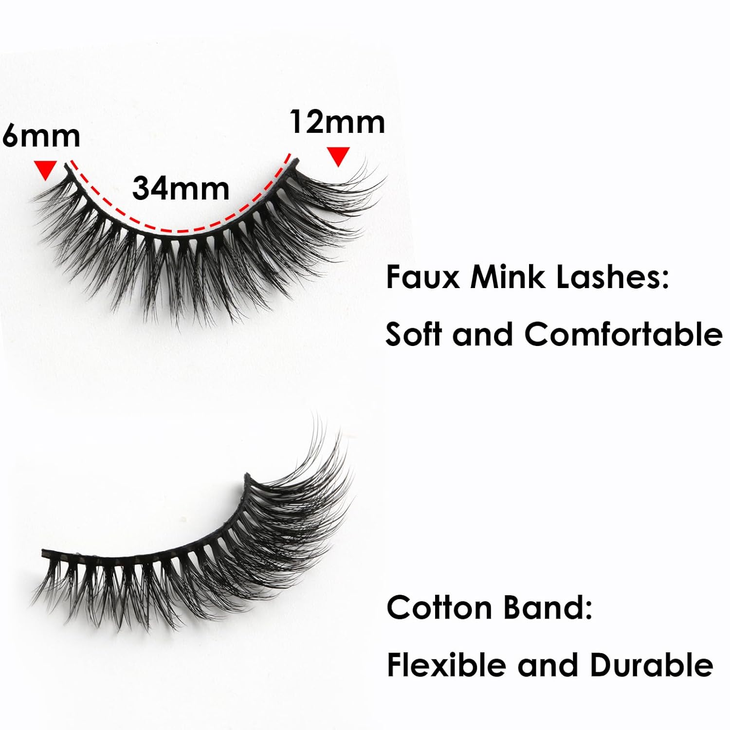 SUNWELL False Eyelashes 12mm Mink Lashes Natural Look Cat Eye Faux Mink Lashes 3D Fluffy Soft Luxury Volume Fake Lashes 10 Pairs Pack