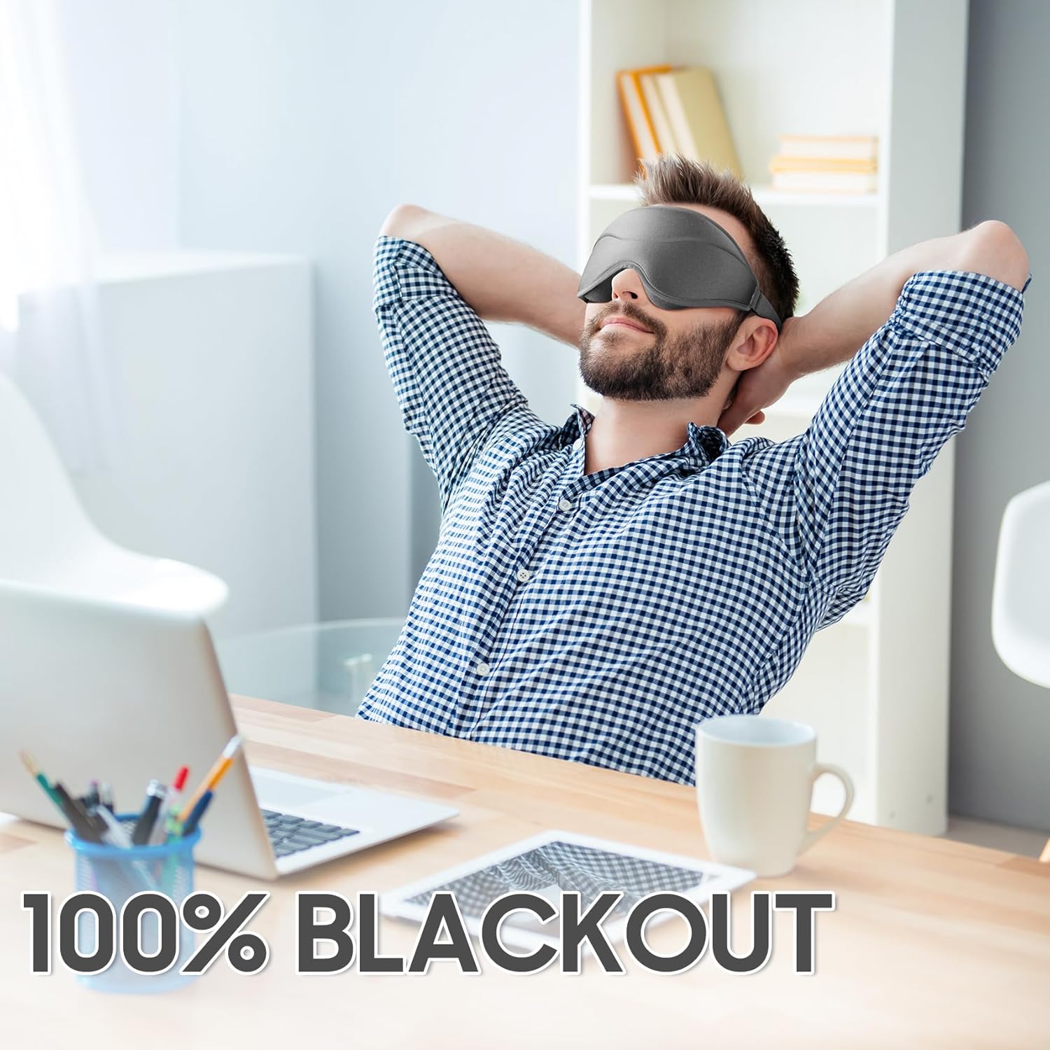 Sleep Mask - Total Blackout 3D Sleeping Mask, Super Lightweight & Silky Soft Eye Mask for Sleeping, Fully Adjustable Fit for Home, Office, Traveling, Meditation, Yoga, Gray