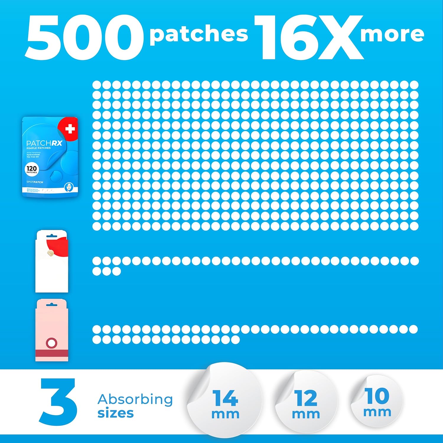 - 500CT ACNE PIMPLE PATCHES FOR FACE: Our acne patches contain 500 pimple patches for face pimples. Zit patches for face help absorb gunk. The hydrocolloid acne patch helps flatten the pimple. When finished, our pimple stickers peel off easily.