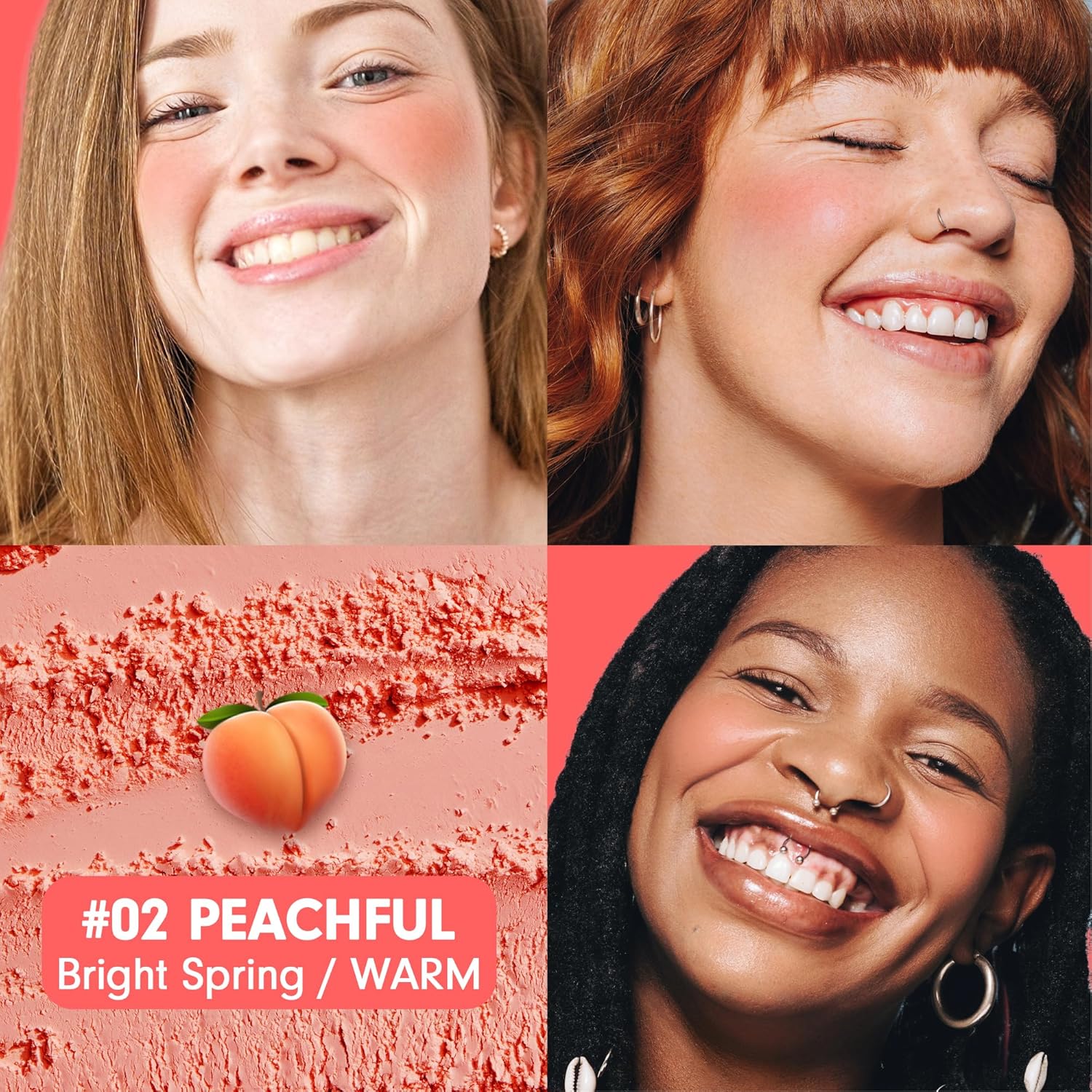 - UNIVERSAL BLUSH COLOR. Revel in the versatility of PEACH C Cheerful Blusher #02 Peachful β a shade designed to suit all skin tones. More than just a makeup blush, it brings a lively burst of color that effortlessly revitalizes your skin for a confident and shimmering radiance throughout the day.