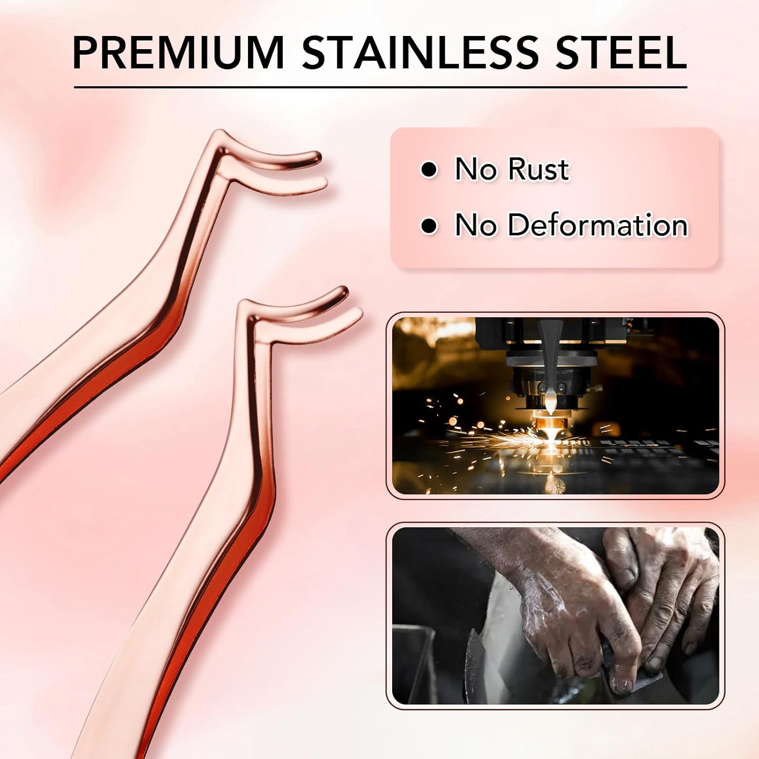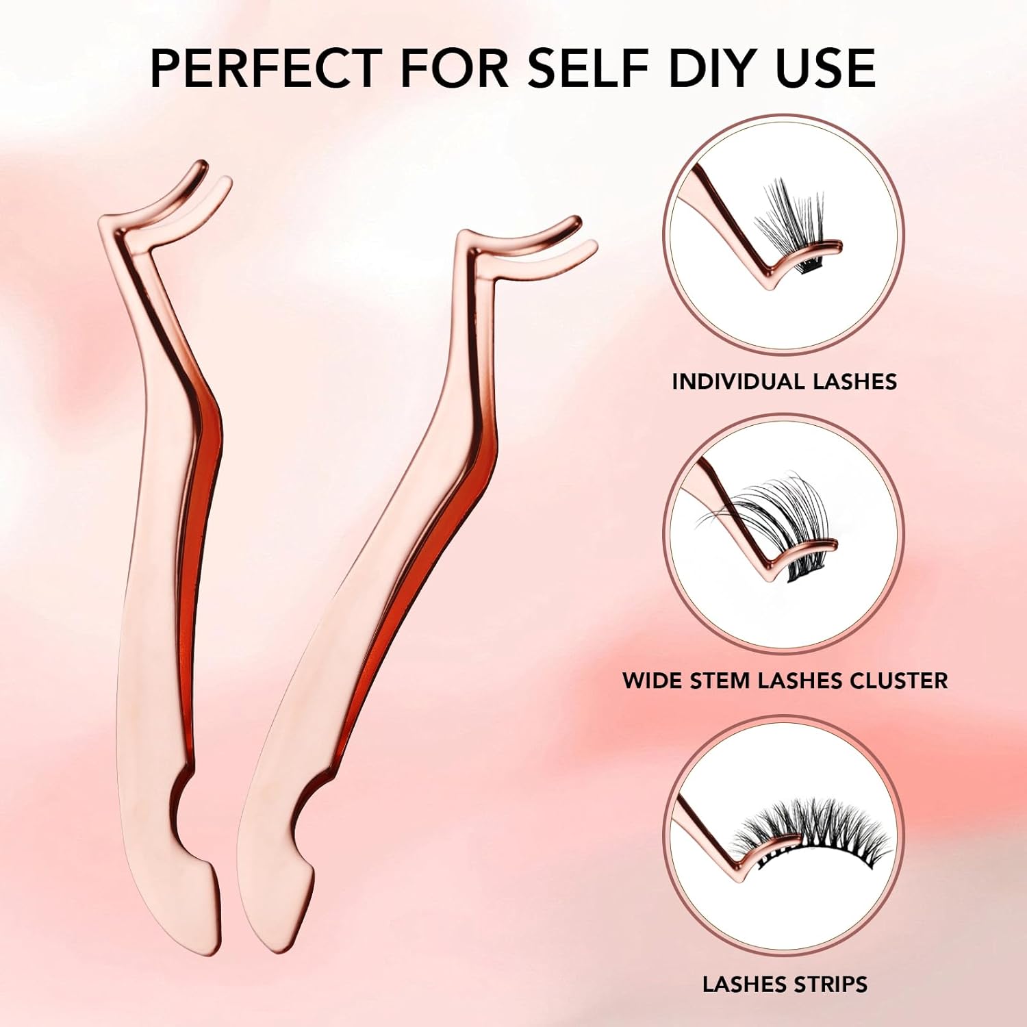 - 【 Premium Material 】 The false eyelash tweezers made of high quality stainless steel, durable and not easy to rust. The curved shaped Eyelash Applicator is very suitable for your eyes, and it is comfortable to use.TIPS: Please clean the eyelash cluster applicator after each use to ensure there is no glue residue on lashes clusters tweezers to keep them for long-term use
