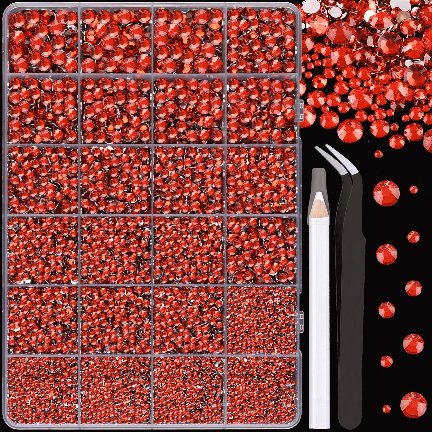 • 💎PACKAGE CONTENT -- The package includes 1 box with 24 grids, featuring a variety of sizes: 2mm x 5 grid, 3mm x 6 grid, 4mm x 5 grids, 5mm x 5 grids, and 6mm x 3 grids, approx. 25000 pcs of 2-6mm bling-out resin rhinestones (Red). 1 tweezers and 1 pickup pen are included for easily picking up of rhinestones. The large amount will support you to fulfill a number of your wonderful DIY decoration ideas.