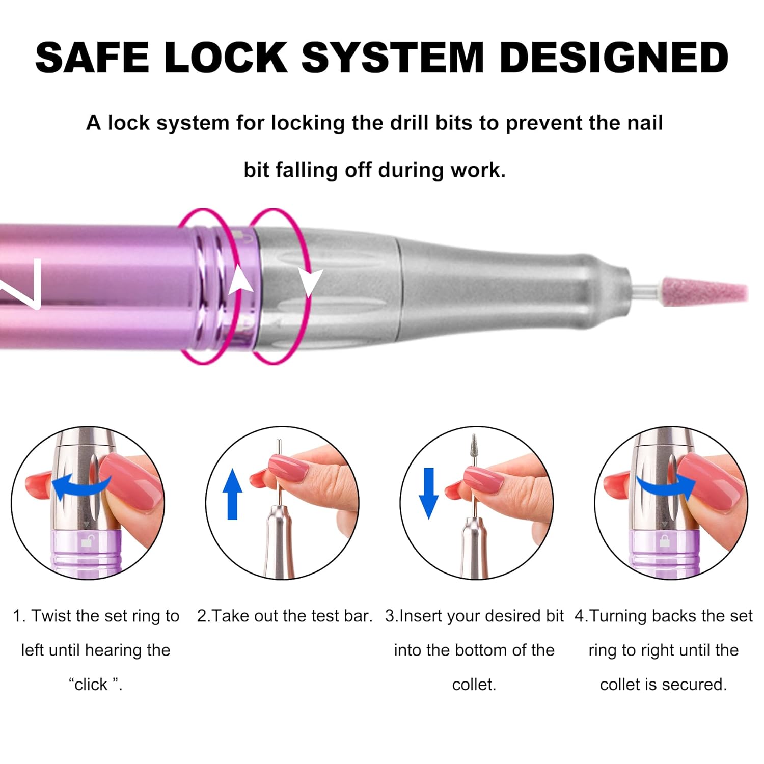 - 35,000 RPM without Noise: Our M professional nail drill machine coreless motor ensures you are able to nail the perfect manicure with whisper-quiet precision. The CE-certified high-speed bearings and aluminum handpiece makes nail shaping a breeze and an all round enjoyable experience
