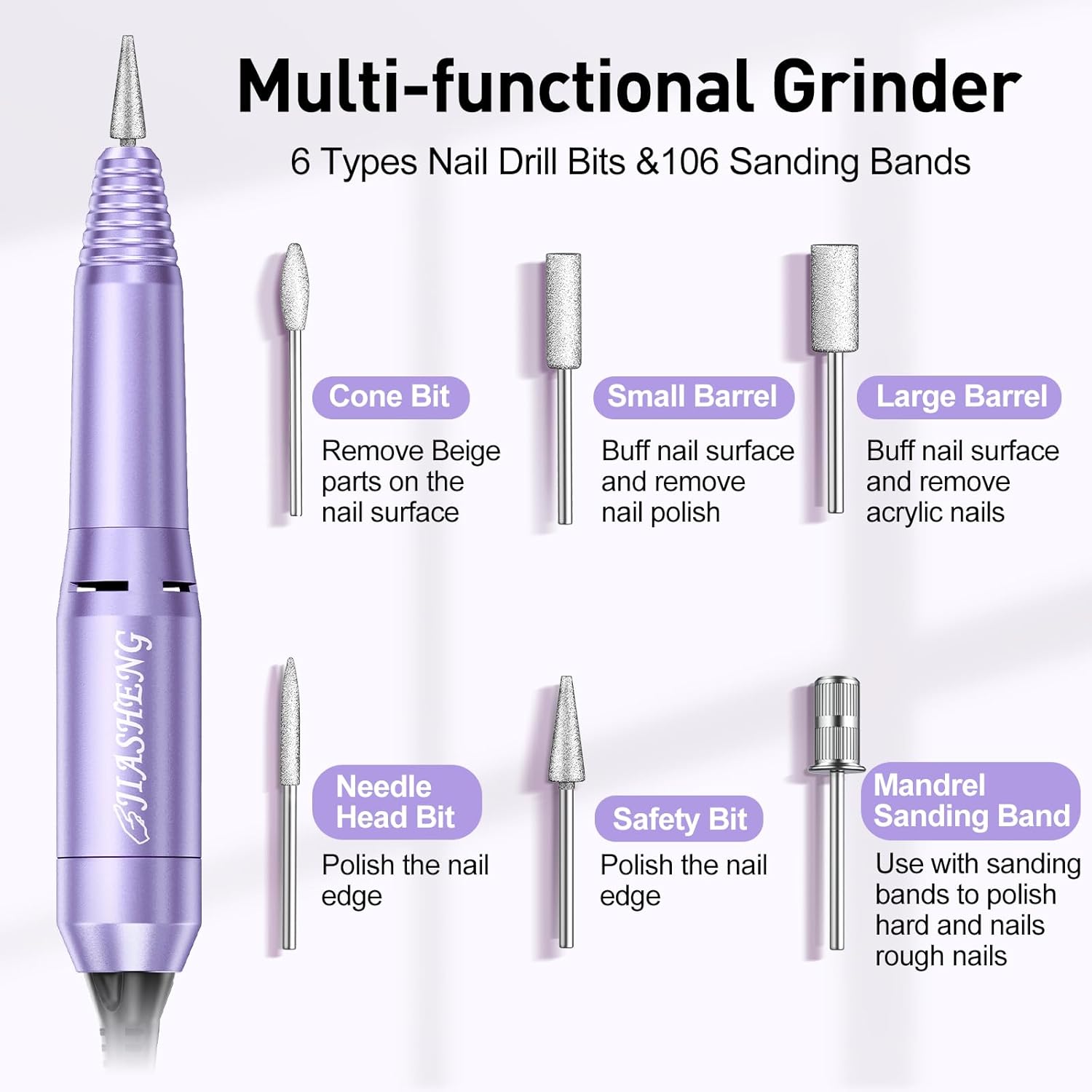 JIASHENG Professional Nail Drill, 20000rpm Electric Nail Drill Machine, Electric Nail File Drills for Acrylic Nails Gel Nails Manicure Pedicure Tools for Salon Use, Violet