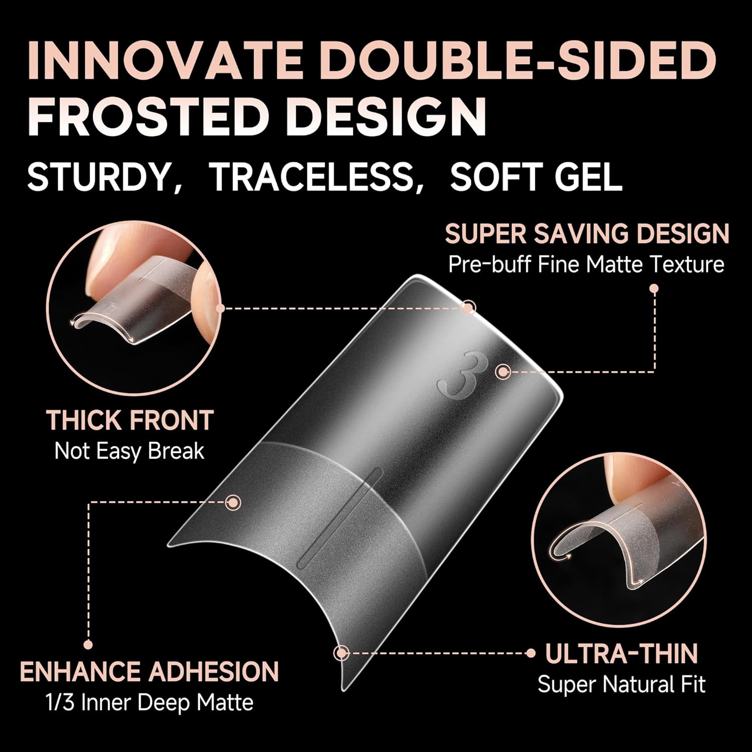 - ๐NEWLY DOUBLE SIDE MATTE TEXTURE-Our medium square gel nail tips upgraded double-sided frosted design. The surface pre-buff with fine matte for applying base coat gives a glossy look. And 1/3 inner pre-buff with deep matte for better adhesive nails. "Thick Front, Ultra-thin Back" design benefit of break-resistant and ultra fit. Let you enjoy this unprecedented professional nail salon enjoyment!