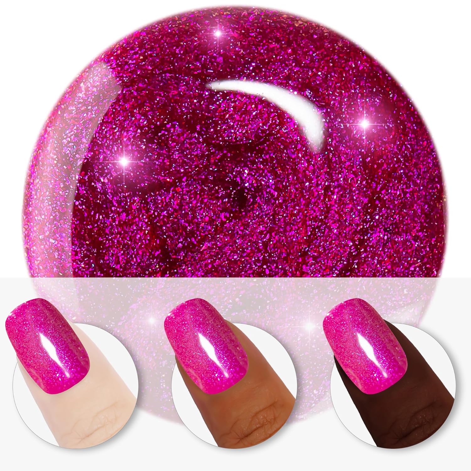 YTD Likomey Hot Pink Glitter Gel Nail Polish,15ml Shimmer Shiny Sparkly Salon Home DIY Manicure Fall Winter UV Color Varnish,SF406