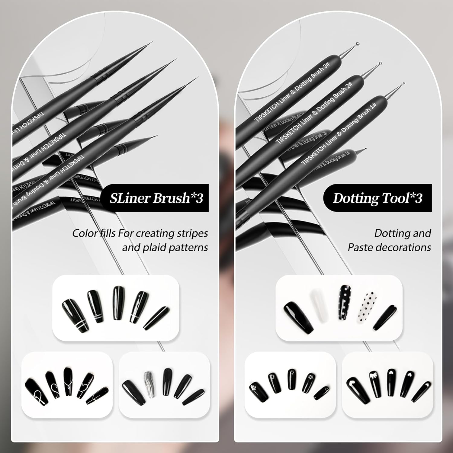 - 【Wide Range Use】Craft stunning nail art with Tipsketch's diverse brush set, perfect for 3D effects, UV gel, French tips, extensions, florals, and gradients.