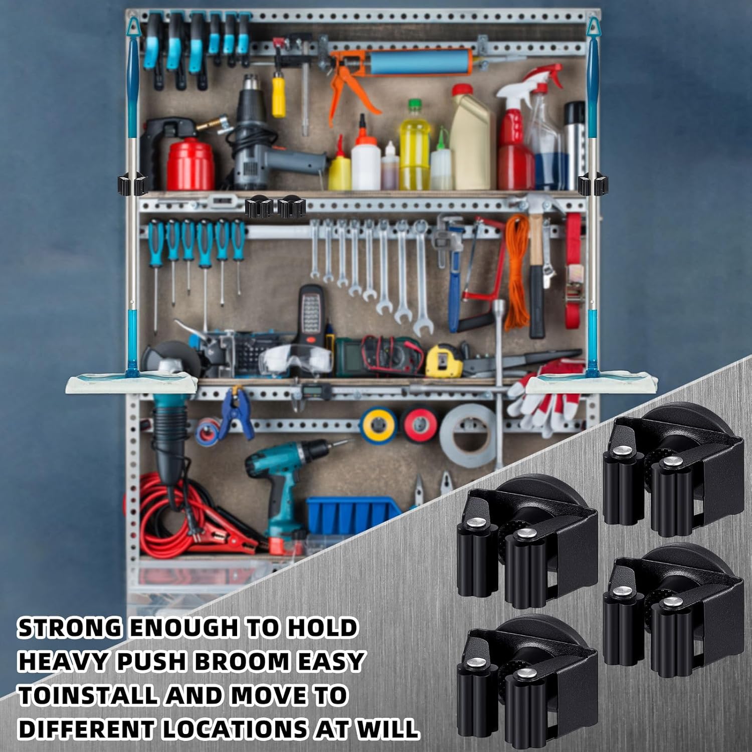 4 Pcs Magnetic Mop Broom Holder Movable Magnetic Broom Holder Rack, Anti Slip Wall Mounted Utility for Cleaning Tools, Garage, Kitchen, Laundry, Garden (Black)