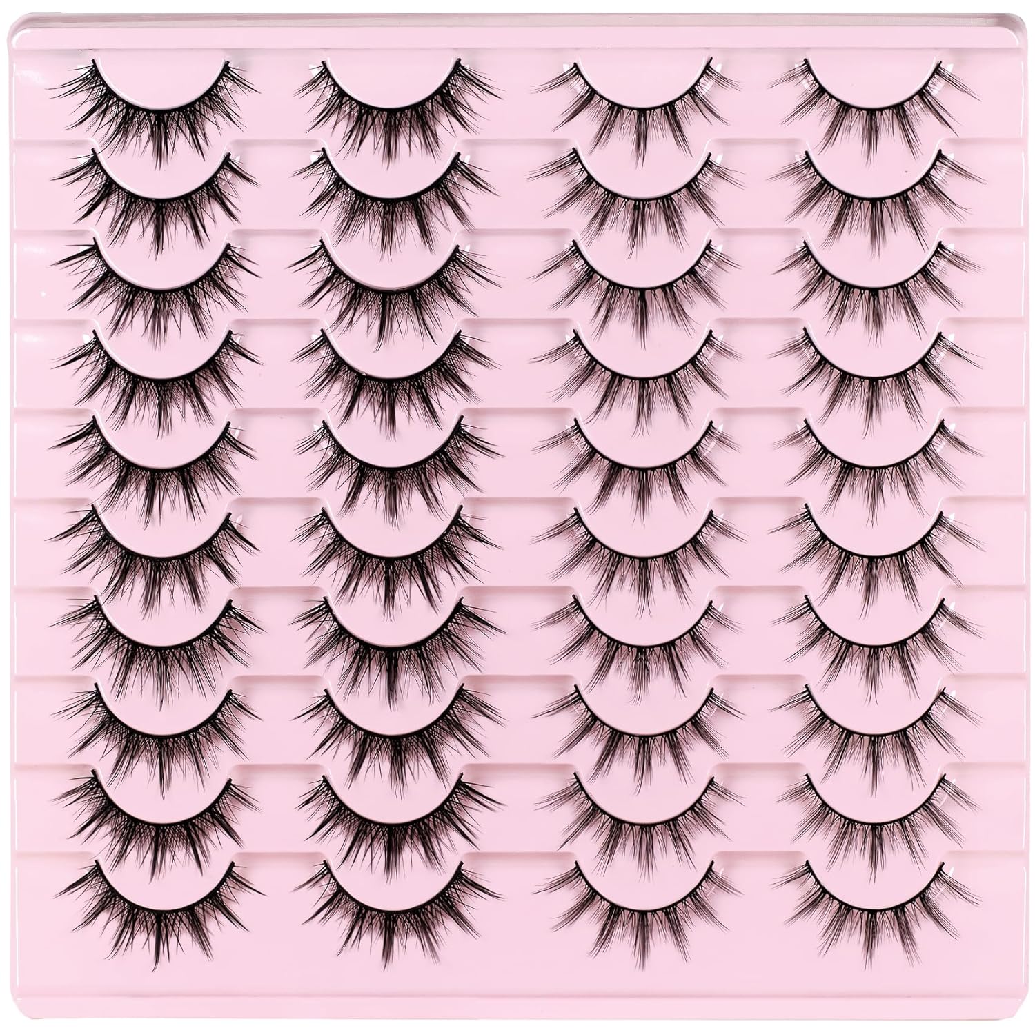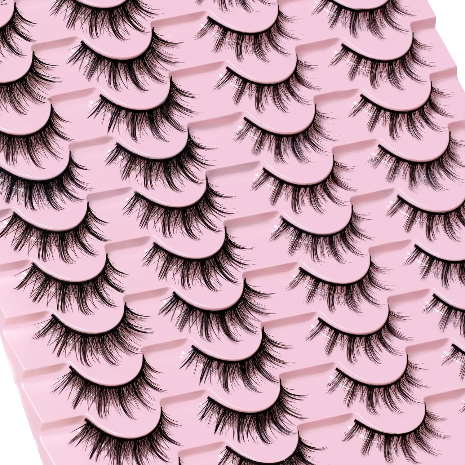 Losha Manga Lashes Natural Look Wispy False Eyelashes 20 Pairs 2 Styles Mixed Soft Fake Eye Lashes Pack Vegan Asian Anime Eyelashes (20P-Manga)
