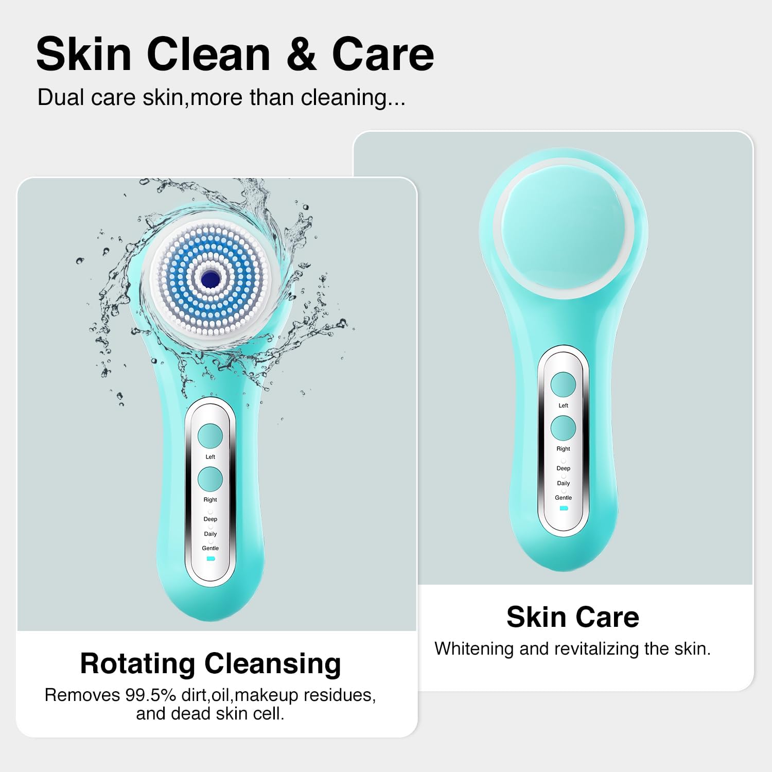 - Left & Right Rotation: This facial cleansing brush combine left and right spin cleansing way, provides more targeted cleaning mode. Left Rotation β Deep Purge Mode,effectively removes acne and trapped debris (nose/chin)οΌRight Rotation β Daily Refresh Mode,Gentle yet thorough to Clears surface oil and impurities (cheeks/forehead).