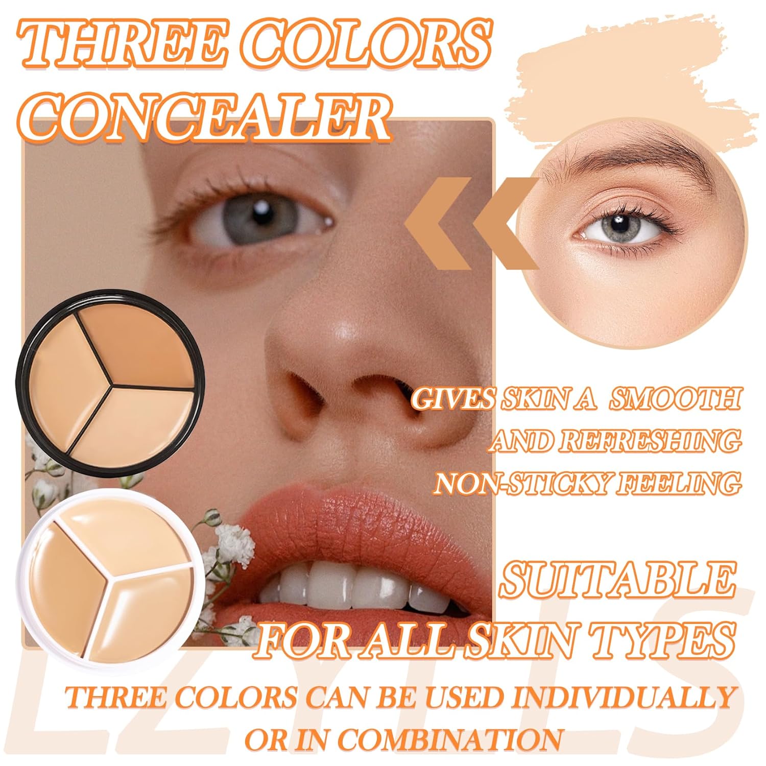 - 🌸【Multi-function】3 colors correcting concealer has three colors of concealer, is a professional color palette, can cover a variety of blemishes, even skin tone, as long as a plate of concealer can achieve a variety of effects.