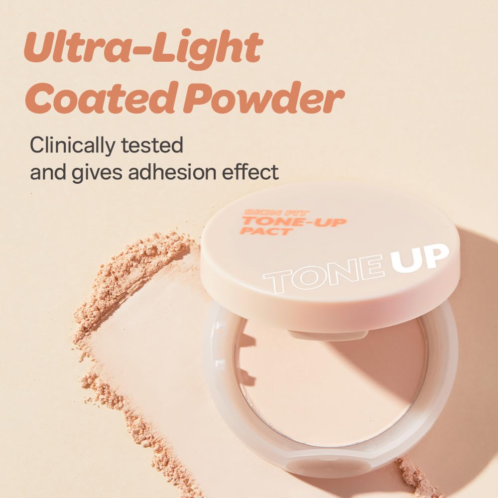 I'M MEME Compact - Skin Fit Tone Up Pact | FLawless Finish with Aqua Sebum, Soft & Velvet Pressed Powder Compact, Smooth Pores & Fine Lines, Korean Makeup, Translucent, Oily Skin, 0.35 Oz