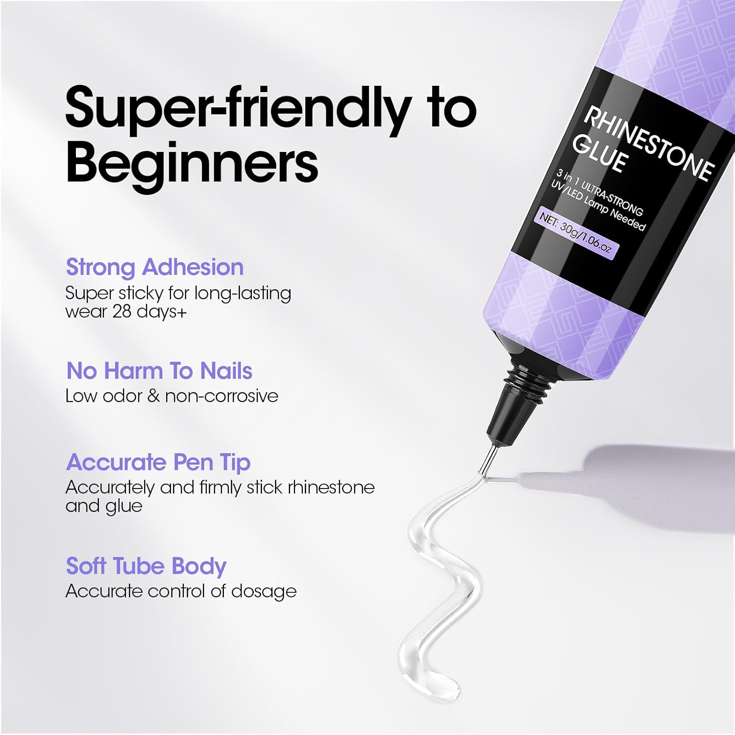 - Convenient to Use: Gellen launches the latest soft tubular design, making you easily squeeze out the amount of glue gel where you need it. The pen tip provides precise control when you apply nail gem glue, easy for both beginners and pros to use. No spill, no mess, no wasting and no need for a nail brush